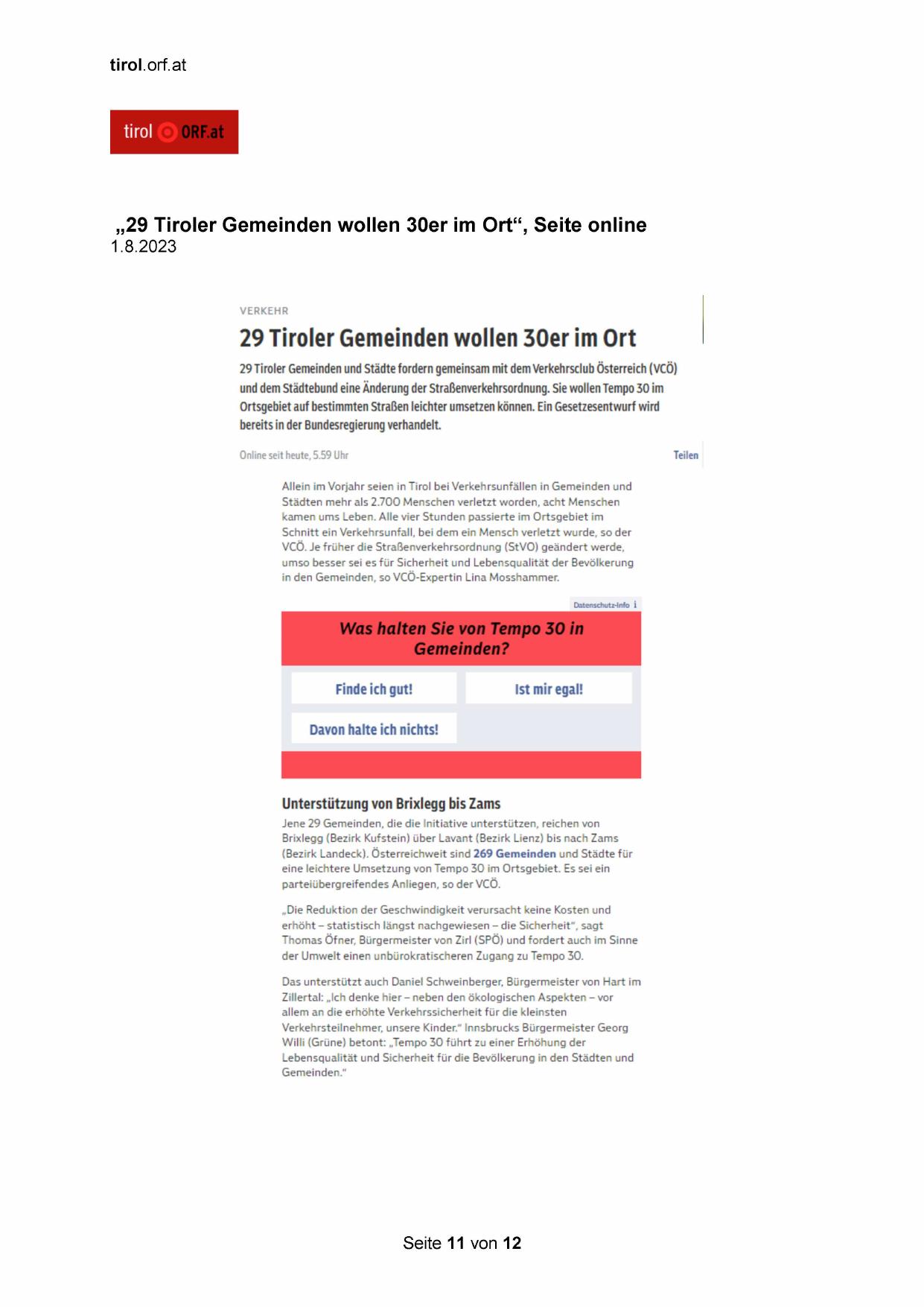 „29 Tiroler Gemeinden wollen 30er im Ort“, Seite online