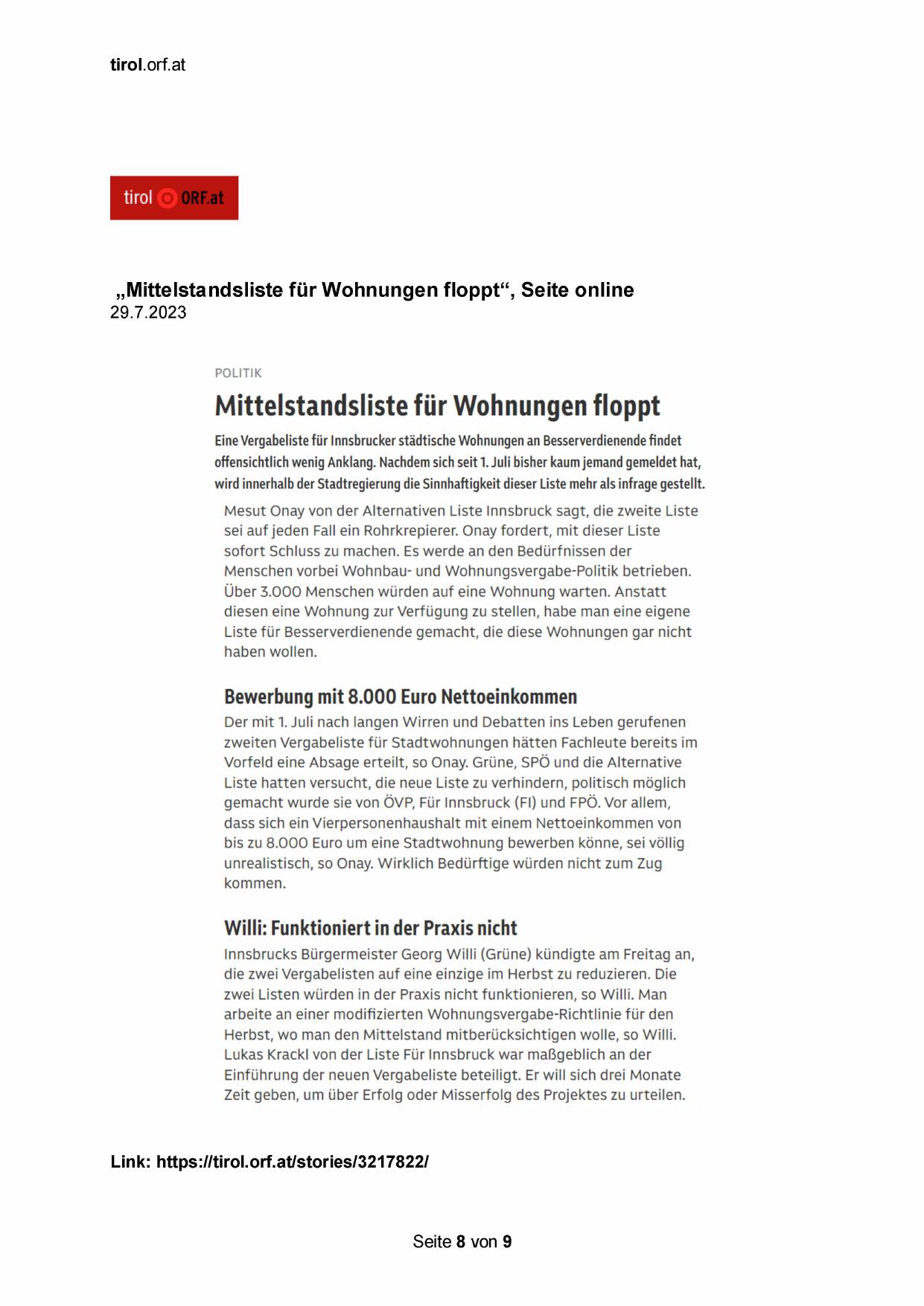 „Mittelstandsliste für Wohnungen floppt“, Seite online
