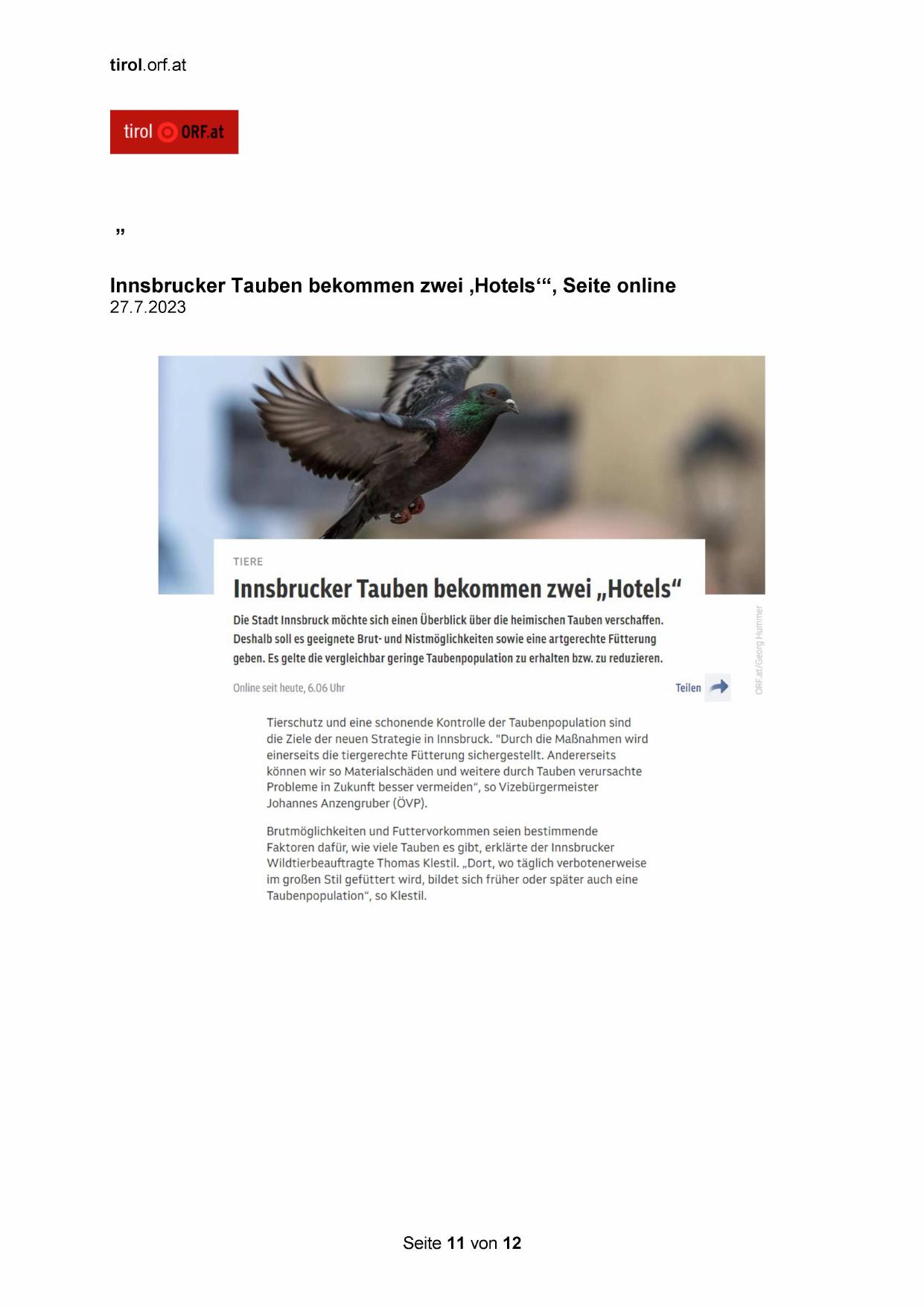 Innsbrucker Tauben bekommen zwei ‚Hotels*‘“, Seite online