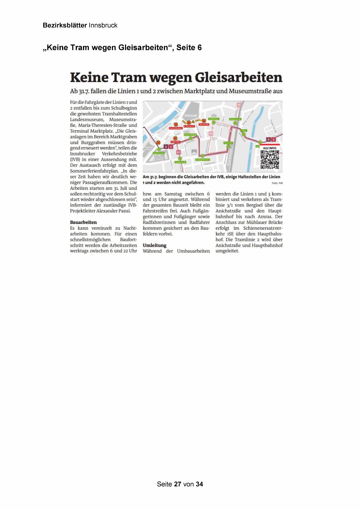Am 31.7. beginnen die Gleisarbeiten der IVB, einige Haltestellen der Linien