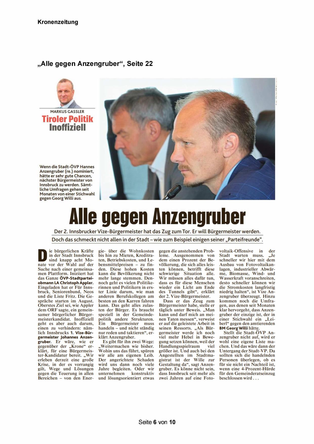 einen zu verhindern: nämlich Innsbrucks 1. Vize-Bürgermeister Johannes Anzengruber. Er wäre, wie er