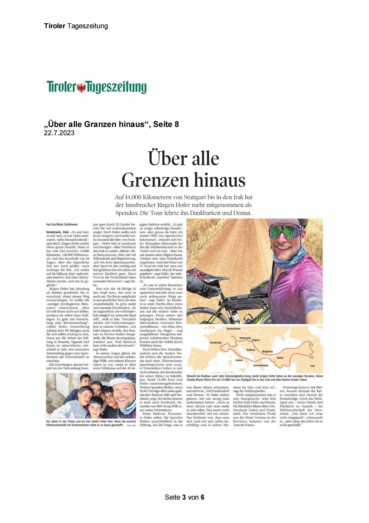 Seine Radtour finanzierte Hofer selbst. Die Spenden