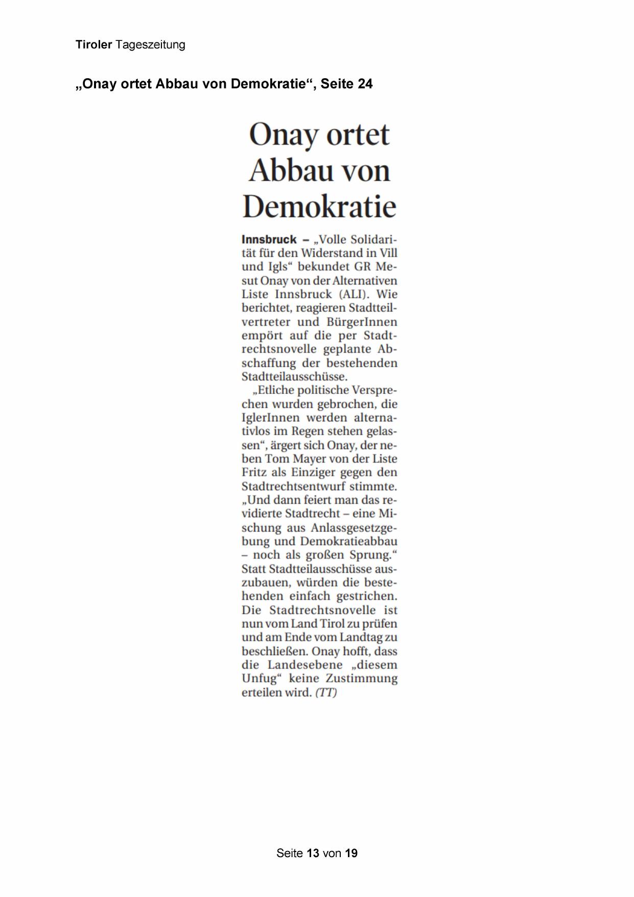 und Igls“ bekundet GR Mesut Onay von der Alternativen