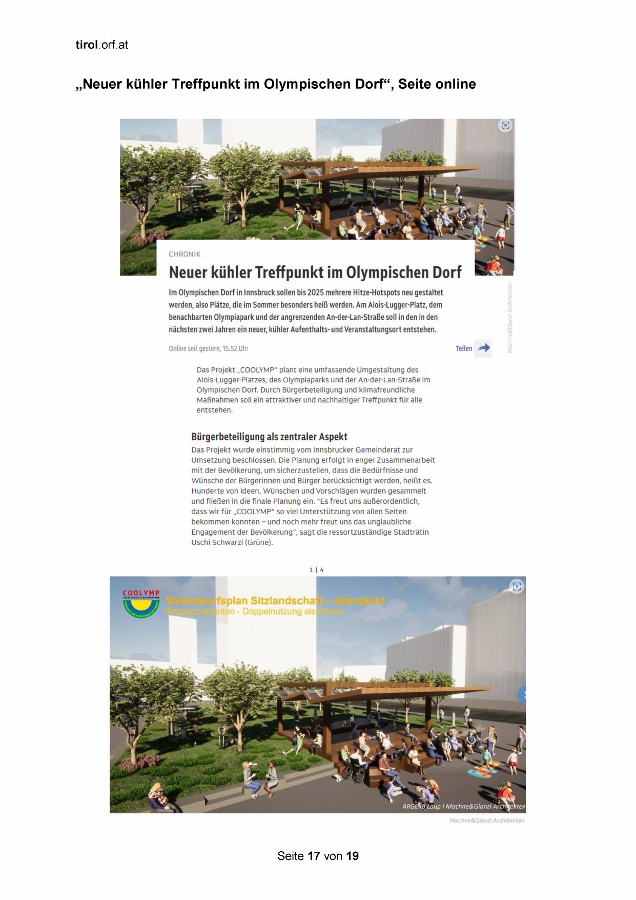 „Neuer kühler Treffpunkt im Olympischen Dorf“, Seite online