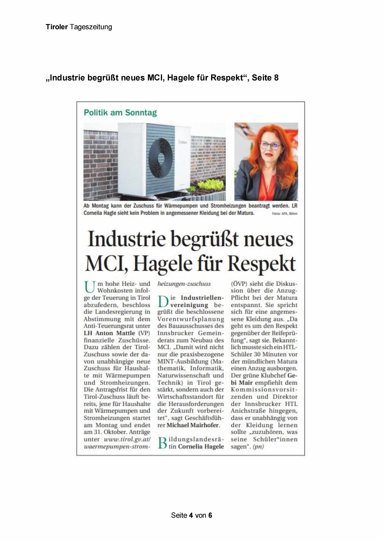 „Industrie begrüßt neues MCI, Hagele für Respekt“, Seite 8