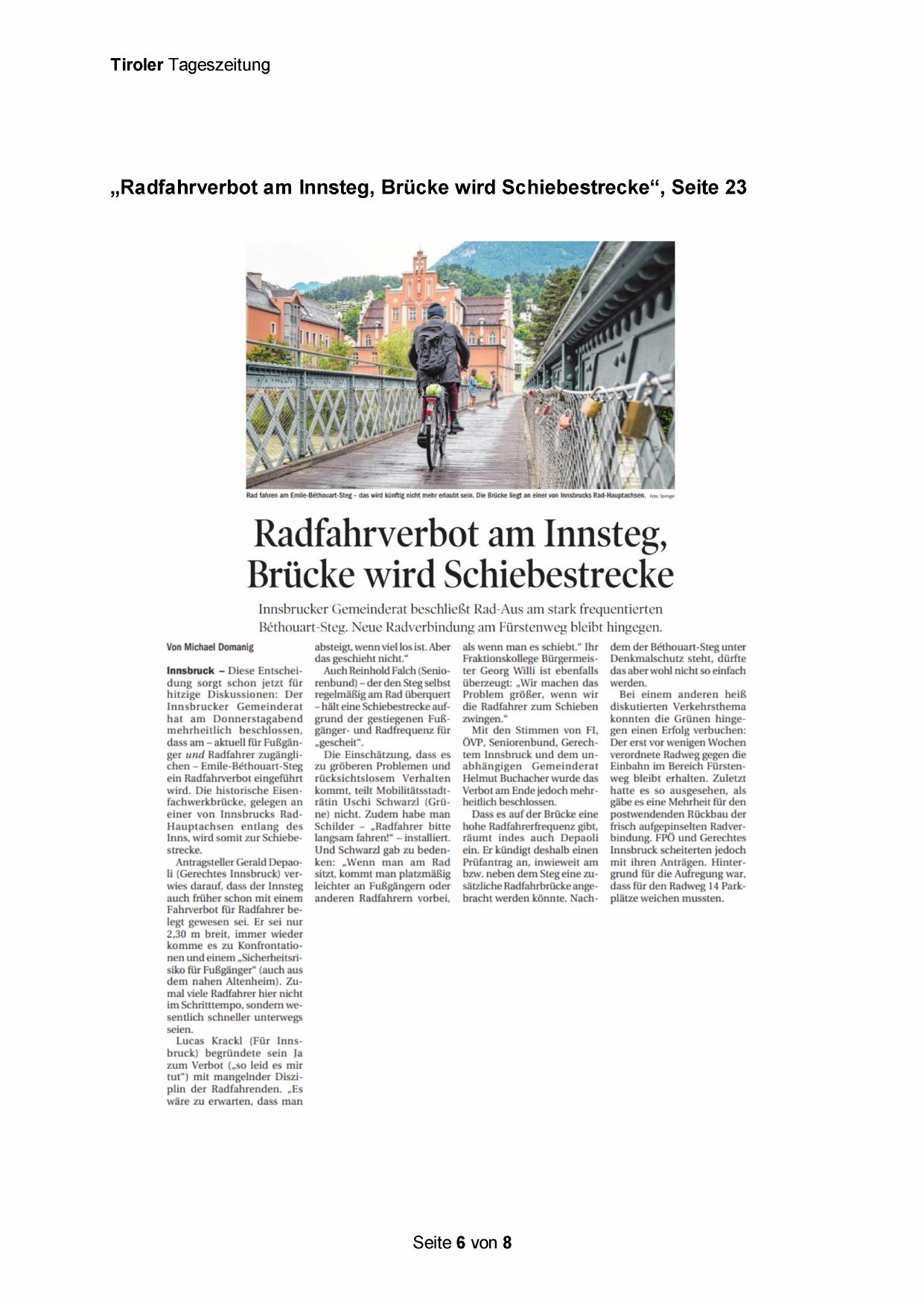 „Radfahrverbot am Innsteg, Brücke wird Schiebestrecke“, Seite 23