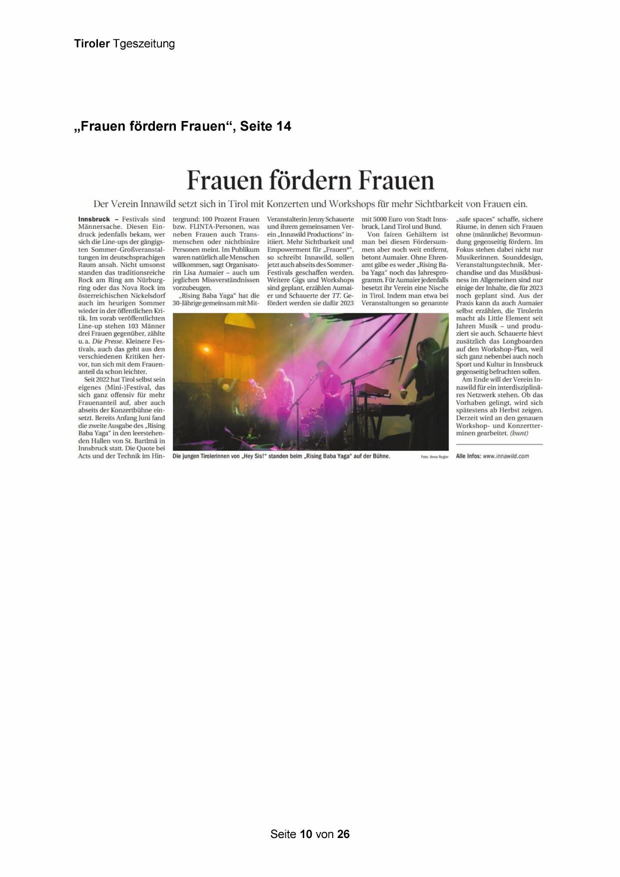 und ihrem gemeinsamen Verein „Innawild Productions“ initiiert. Mehr Sichtbarkeit und