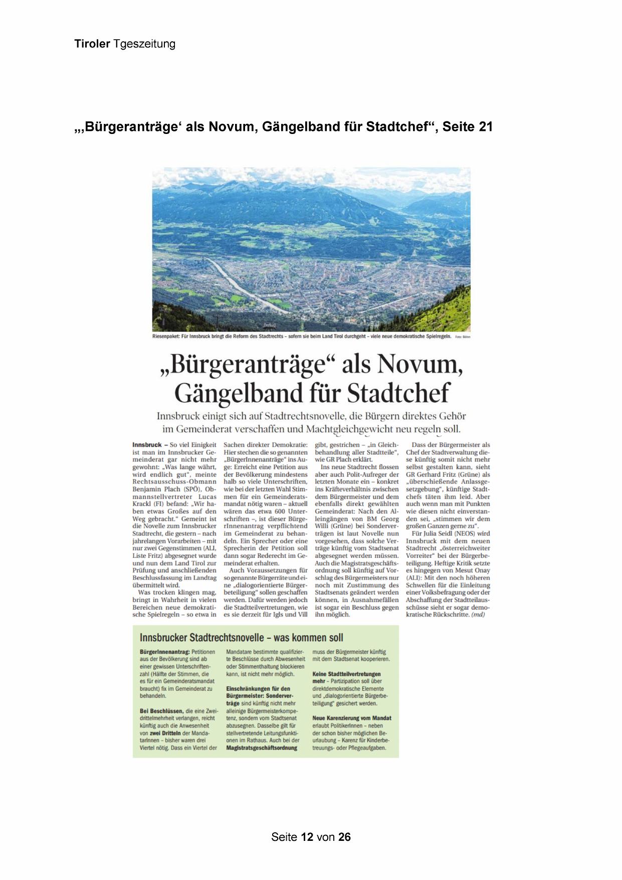 Innsbrucker Stadtrechtsnovelle - was kommen soll