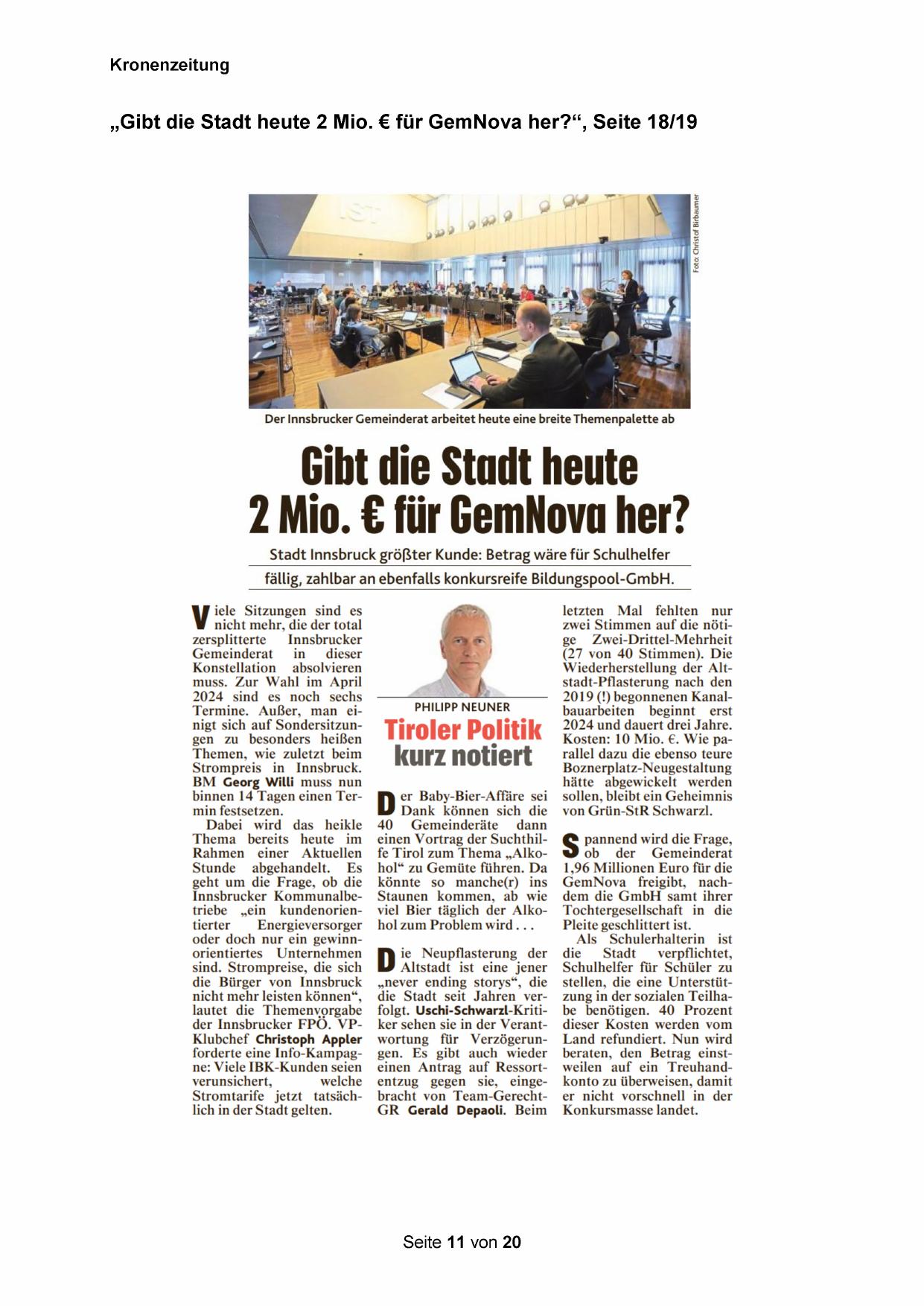 „Gibt die Stadt heute 2 Mio. € für GemNova her?“, Seite 18/19