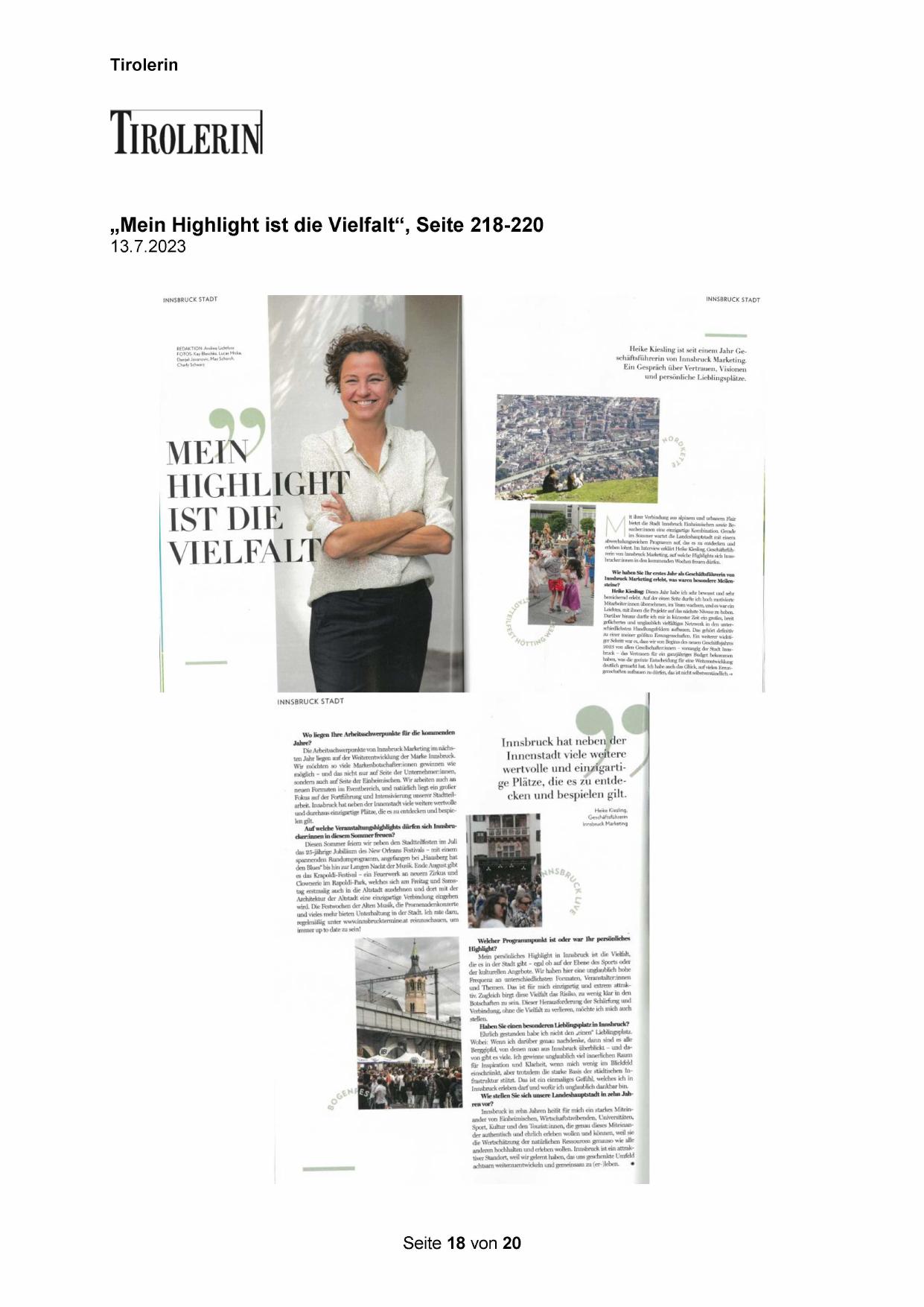ten Jahr liegen auf der Weiterentwicklung der Marke Innsbruck. | nnenst il(h V l(‘l e weitere