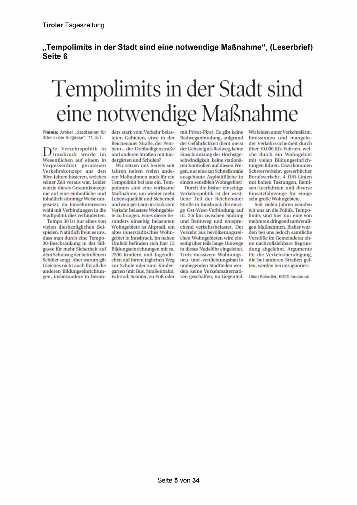 30er in der Sillgasse“, TT, 3.7.
