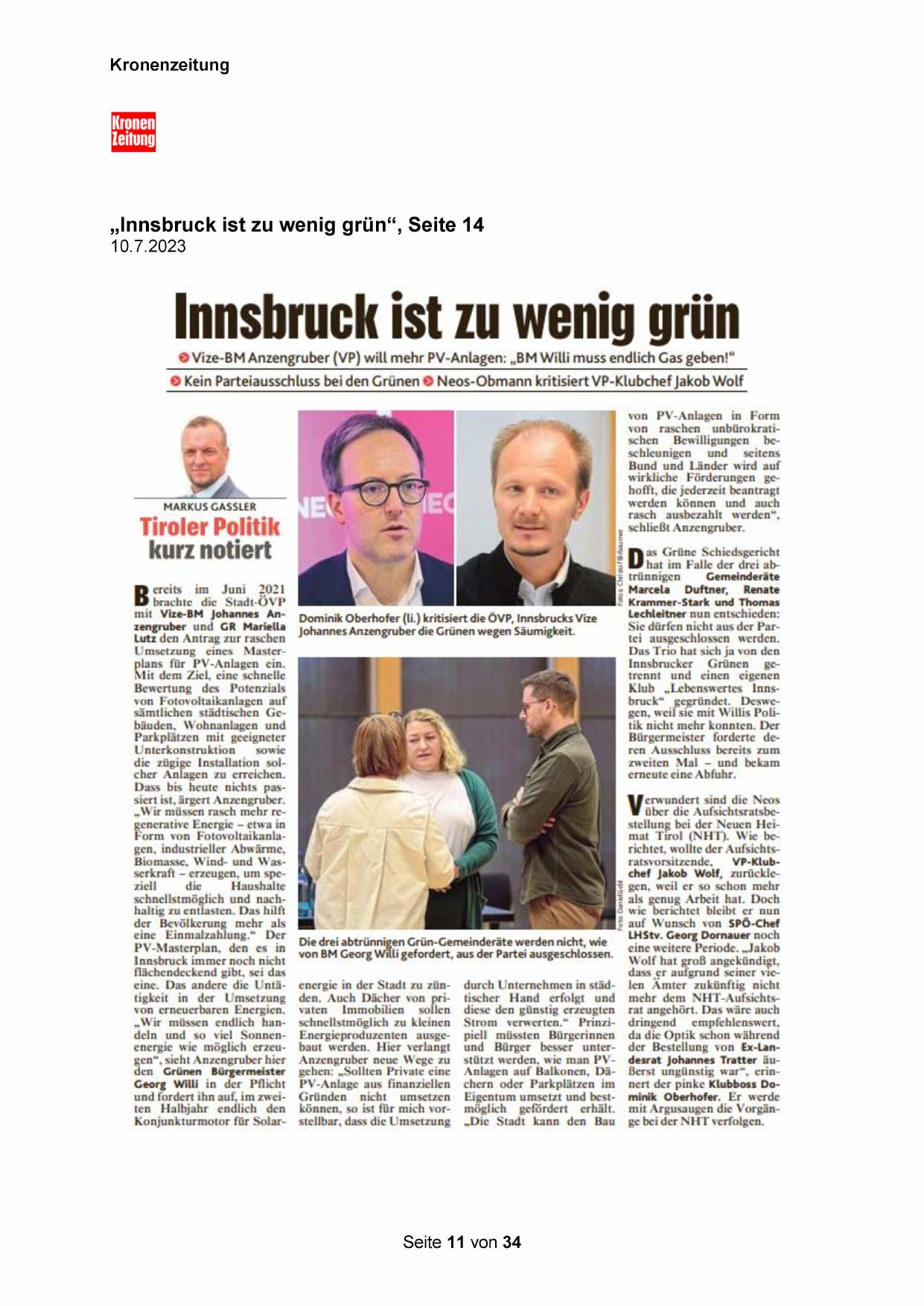 Klub „Lebenswertes Innsbruck“* gegründet. Deswegen, weil sie mit Willis Politik nicht mehr konnten. Der