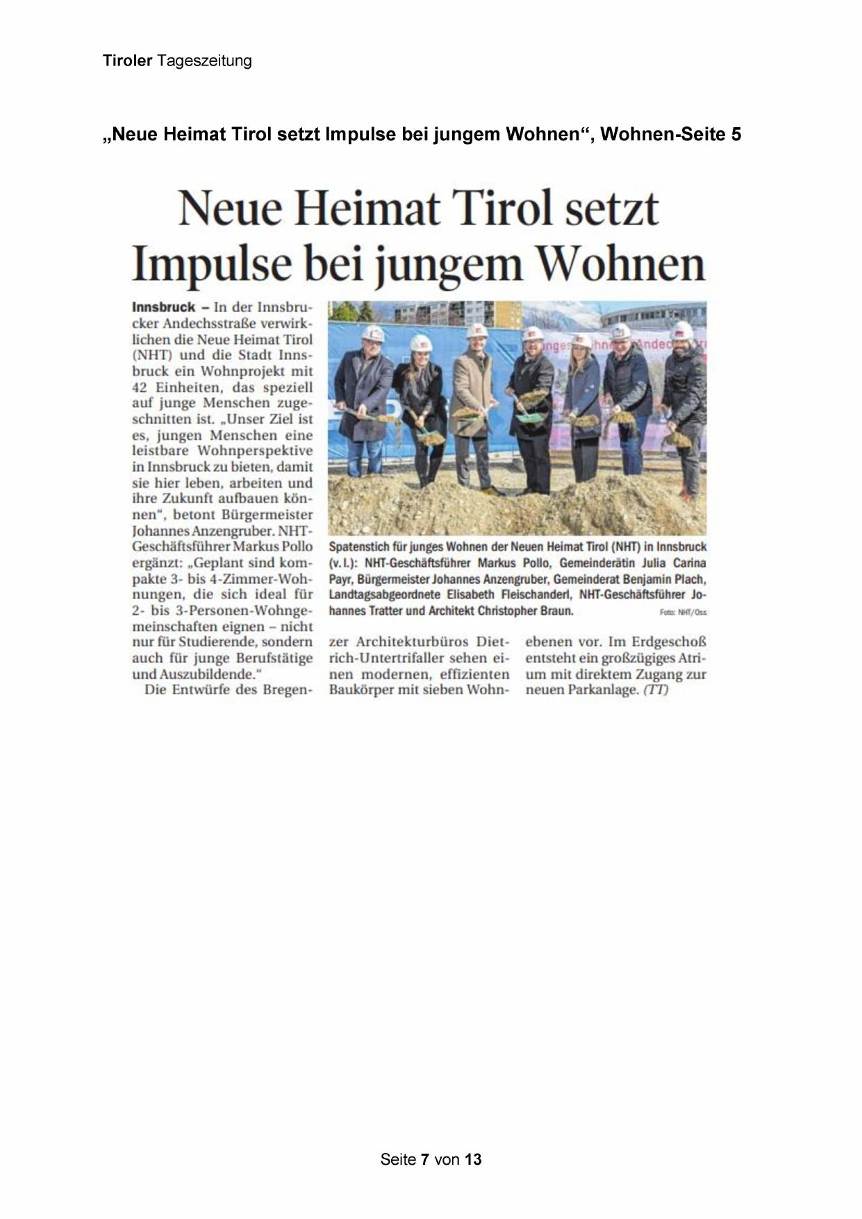 „Neue Heimat Tirol setzt Impulse bei jungem Wohnen“, Wohnen-Seite 5