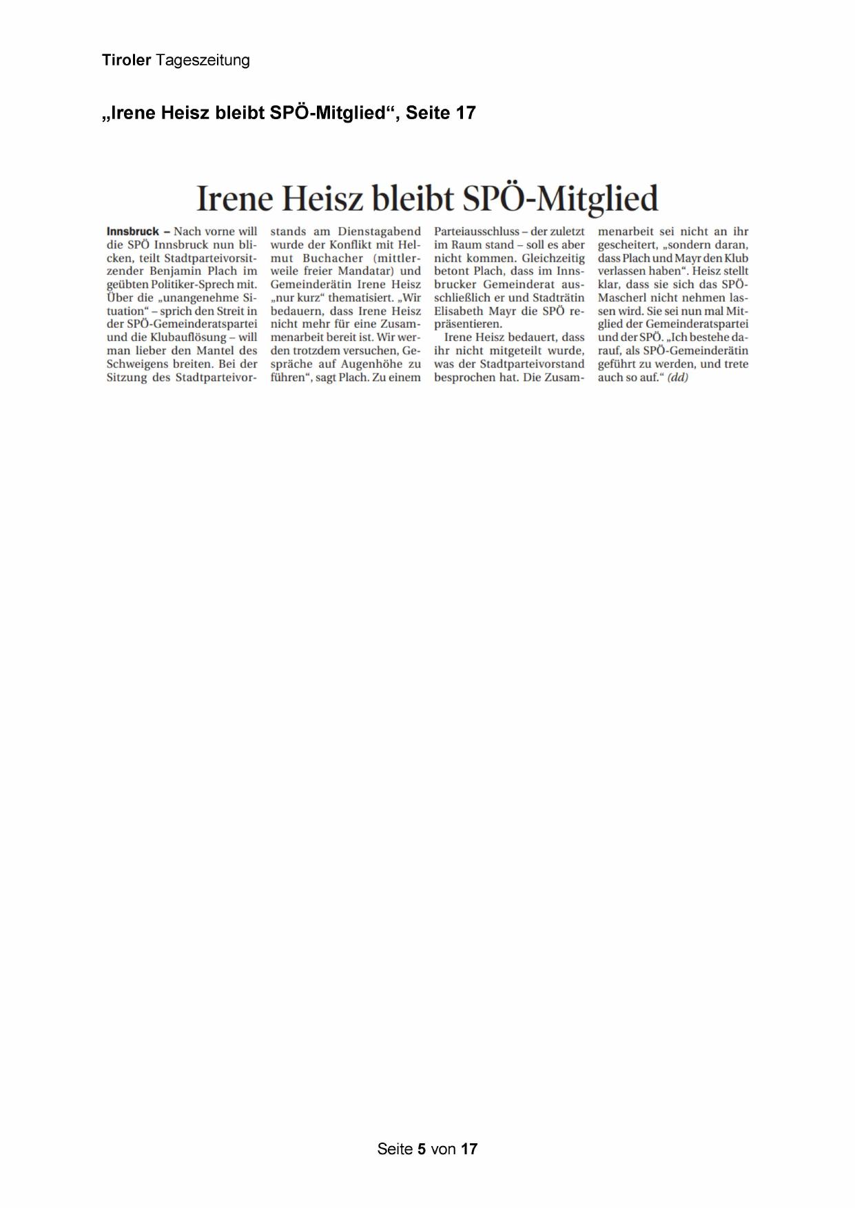 „Irene Heisz bleibt SPÖ-Mitglied‘“, Seite 17