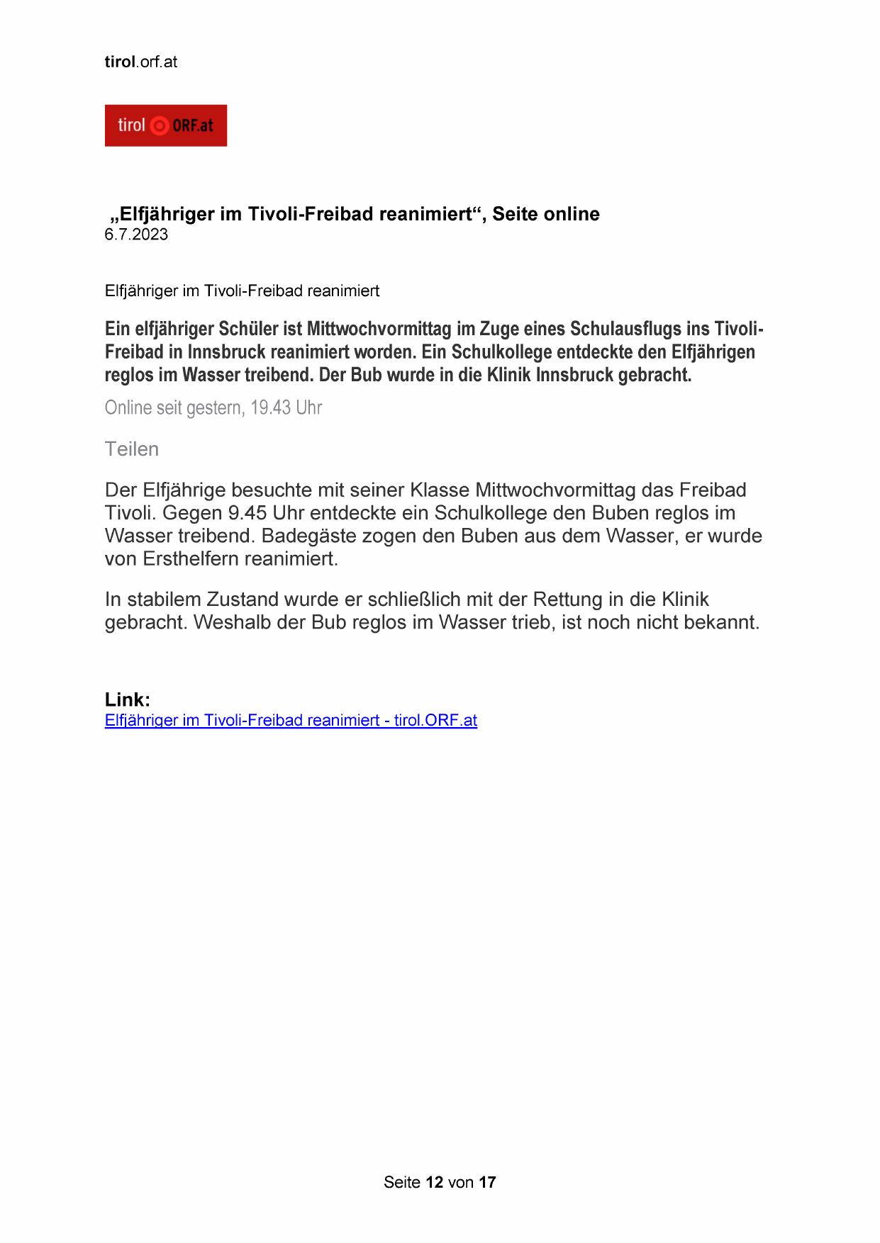 „Elfjähriger im Tivoli-Freibad reanimiert“, Seite online