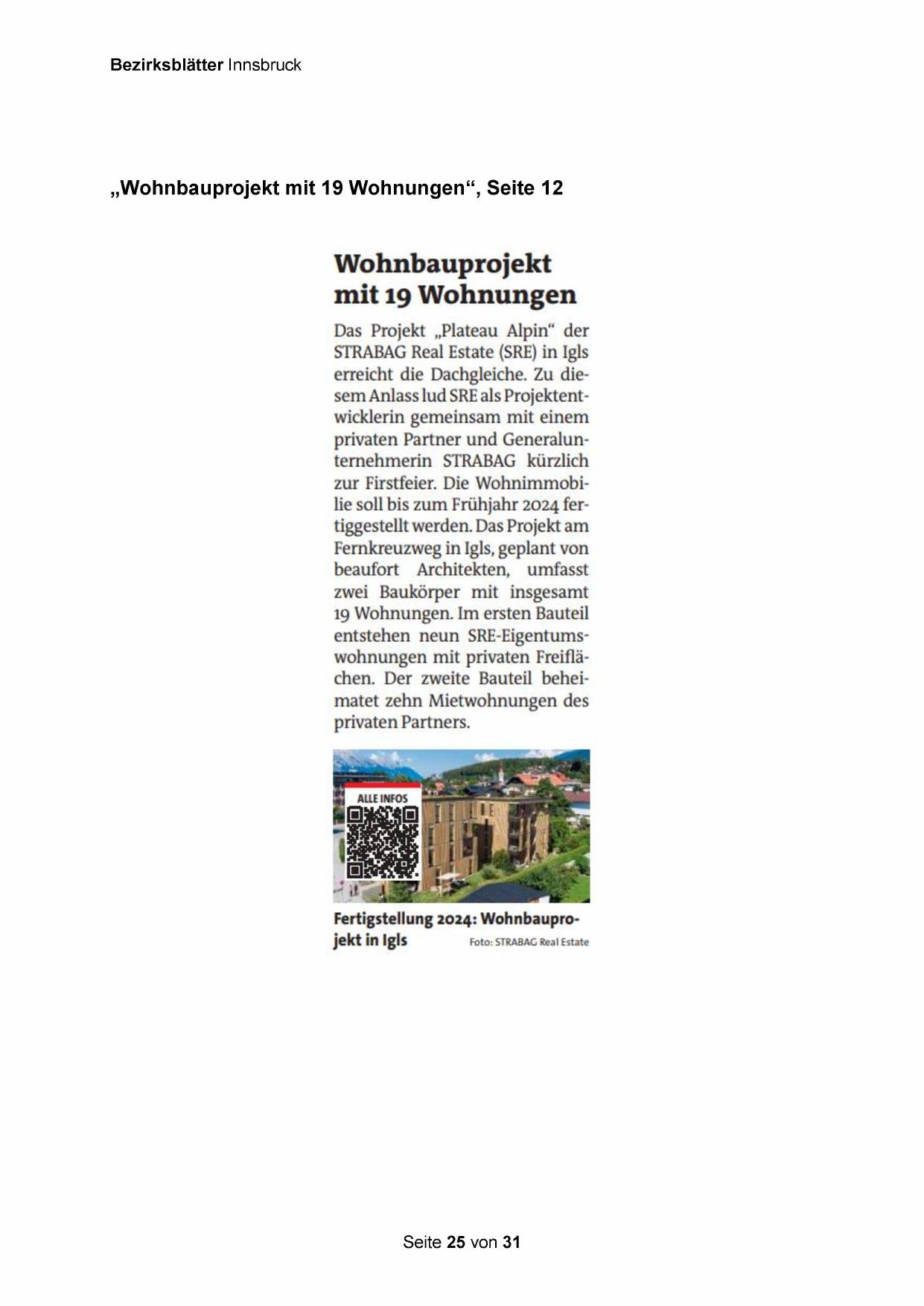 Fertigstellung 2024: Wohnbauprojekt in Igls Foto: STRABAG Real Estate