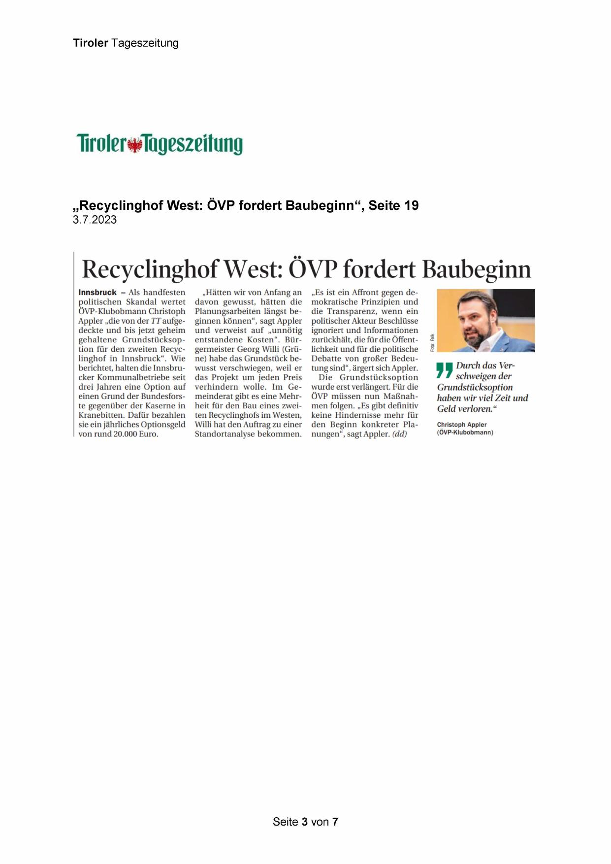 „Recyclinghof West: ÖVP fordert Baubeginn“, Seite 19