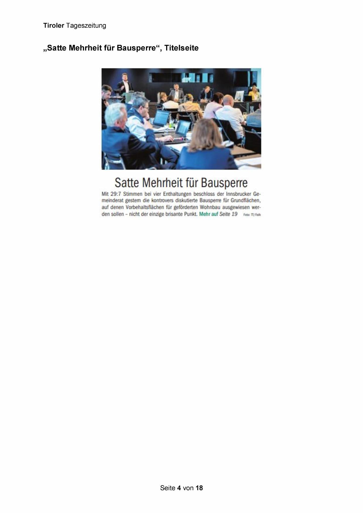 Mit 29:7 Stimmen bei vier Enthaltungen beschloss der Innsbrucker Gemeinderat gesterm die kontrovers diskutierte Bausperre für Grundflächen,