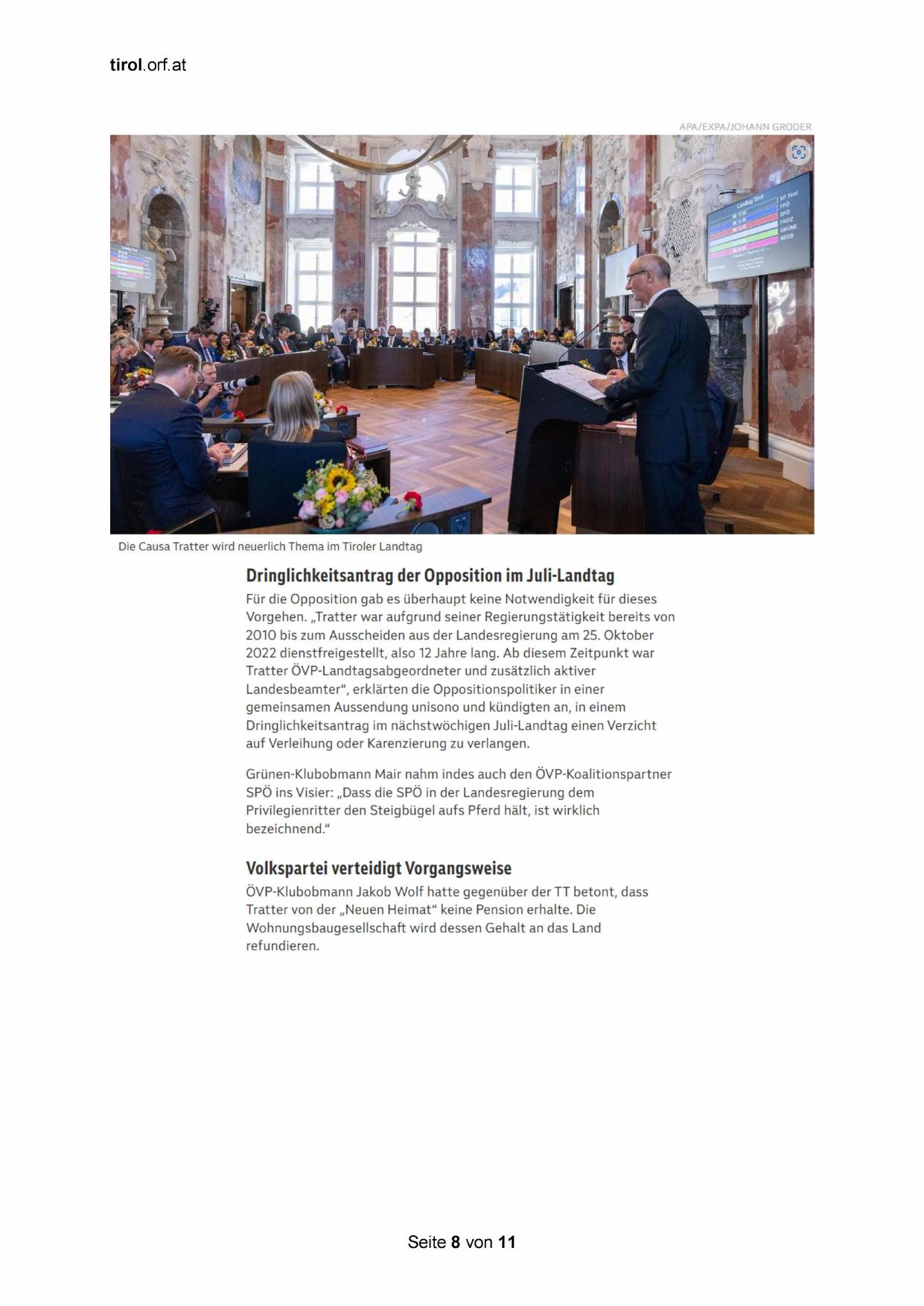 Die Causa Tratter wird neuerlich Thema im Tiroler Landtag