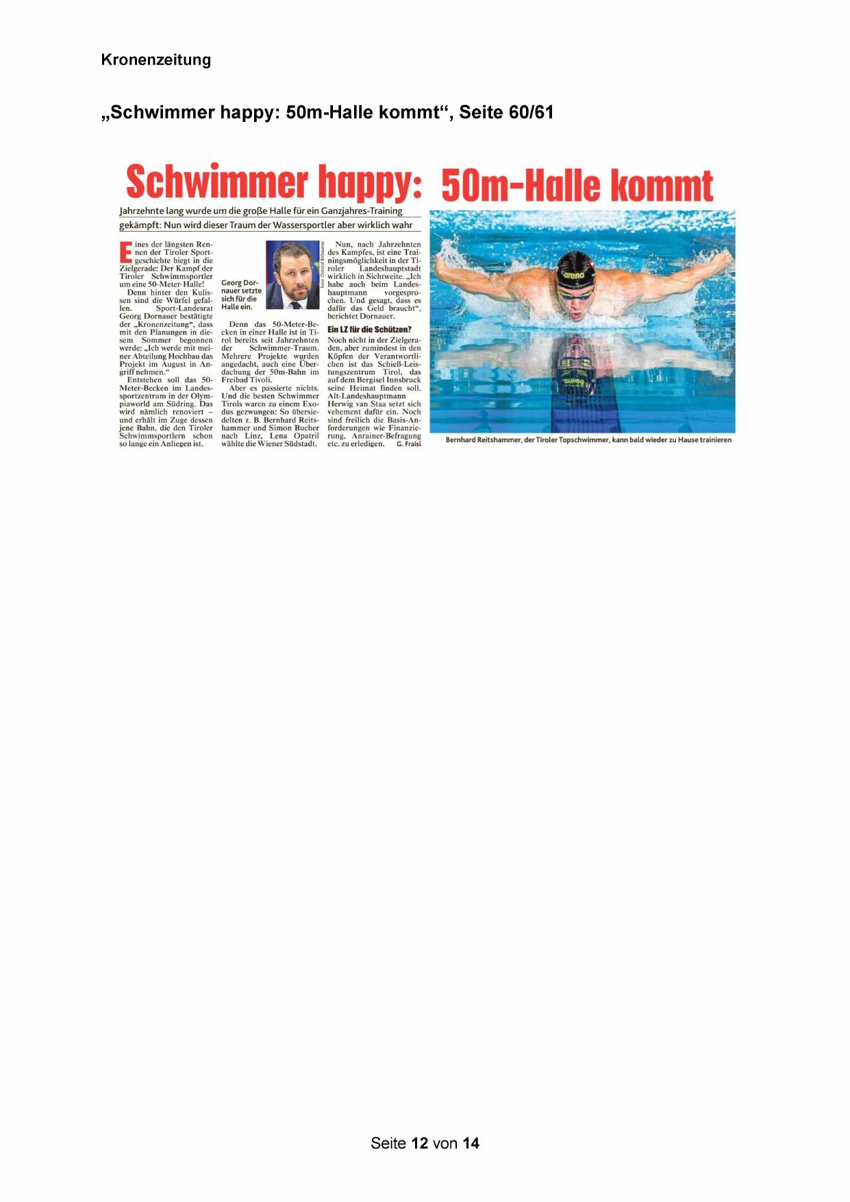 „Schwimmer happy: 50m-Halle kommt“, Seite 60/61
