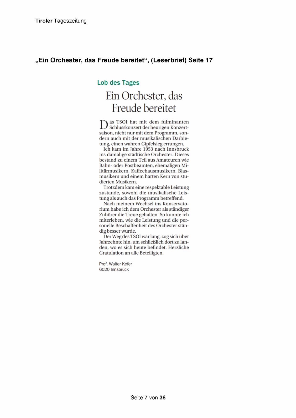 „Ein Orchester, das Freude bereitet“, (Leserbrief) Seite 17