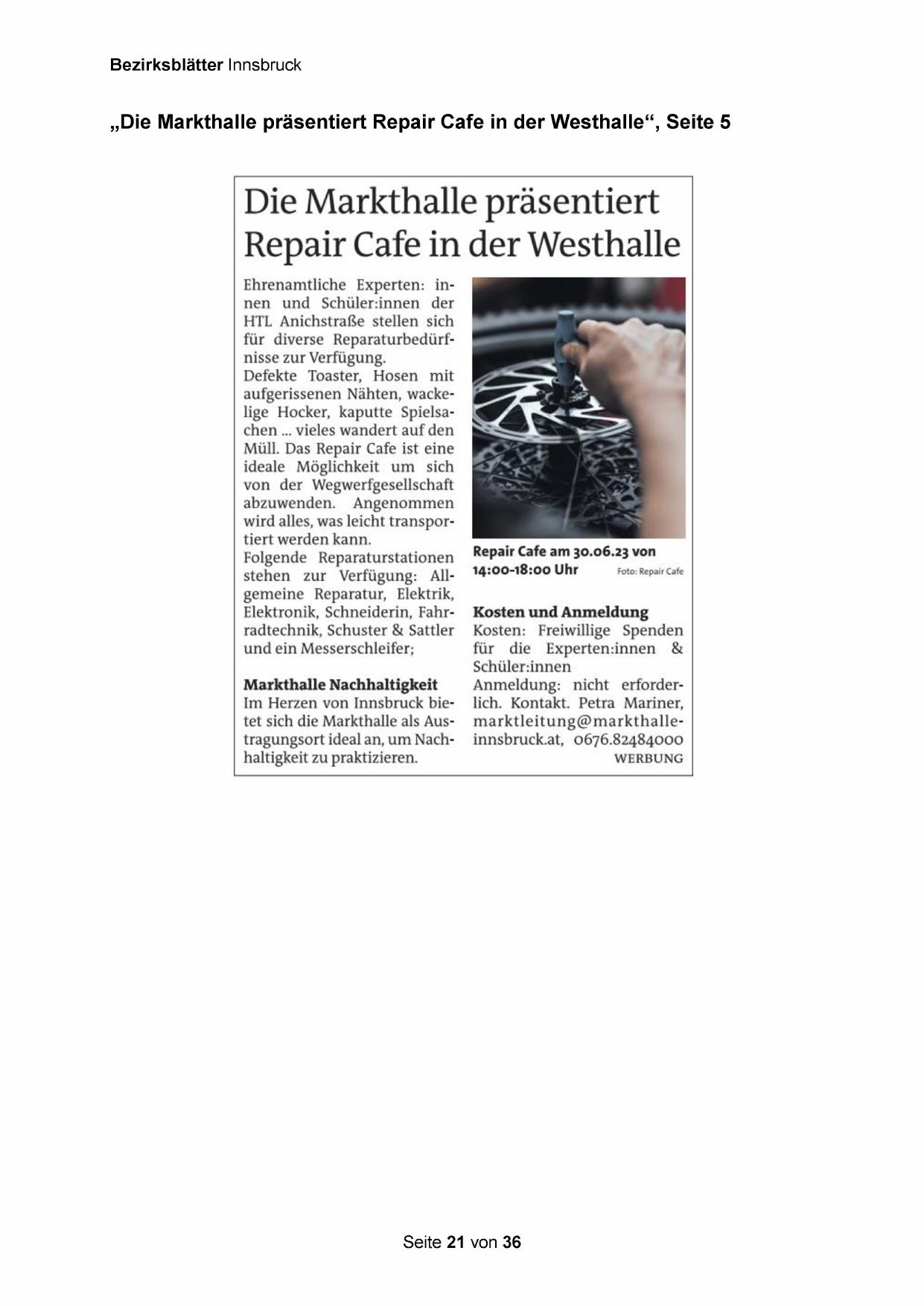 „Die Markthalle präsentiert Repair Cafe in der Westhalle*‘‘, Seite 5