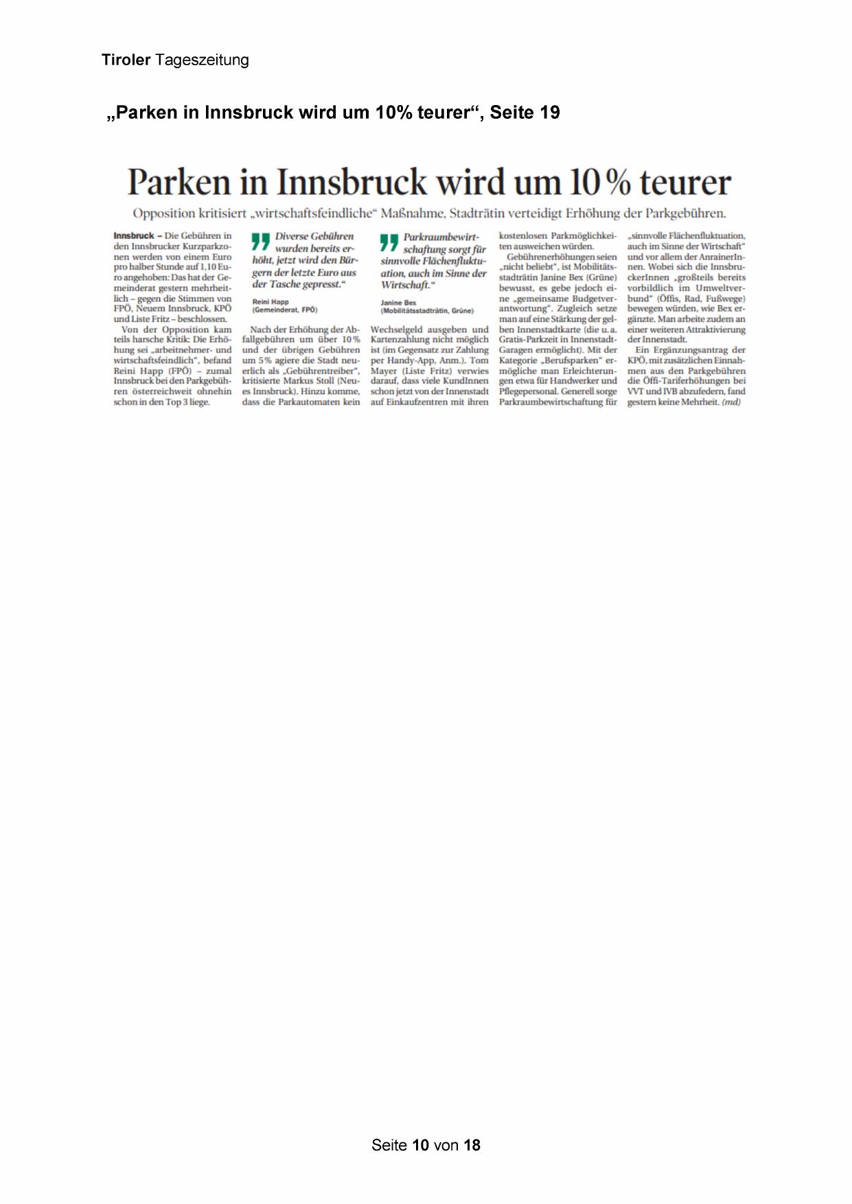 „Parken in Innsbruck wird um 10% teurer“, Seite 19