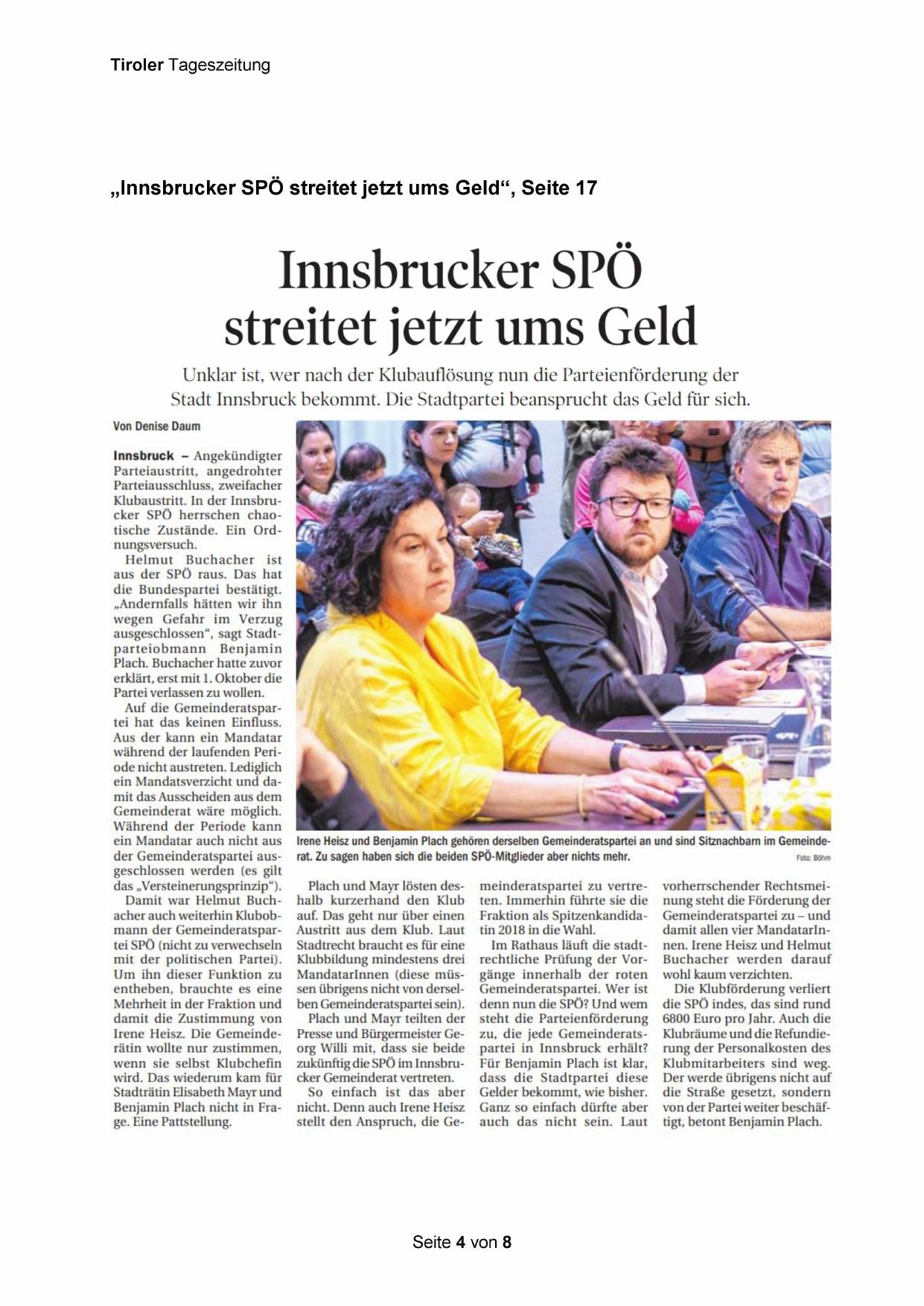 „Innsbrucker SPÖOÖ streitet jetzt ums Geld“, Seite 17
