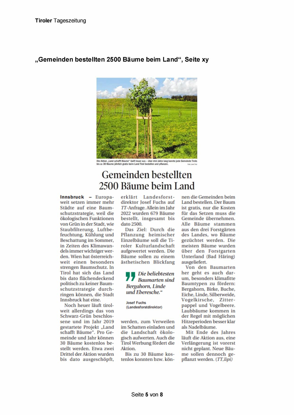 „Gemeinden bestellten 2500 Bäume beim Land“, Seite xy