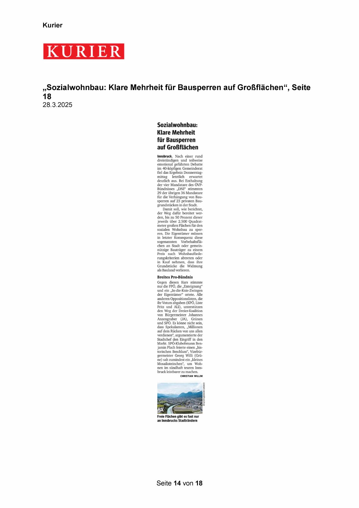„Sozialwohnbau: Klare Mehrheit für Bausperren auf Großflächen“, Seite
