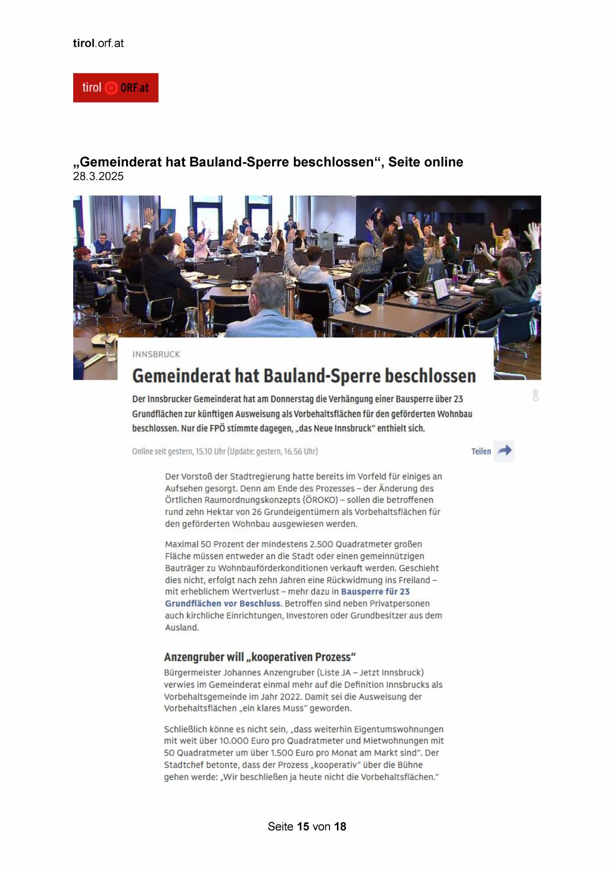 „Gemeinderat hat Bauland-Sperre beschlossen“, Seite online