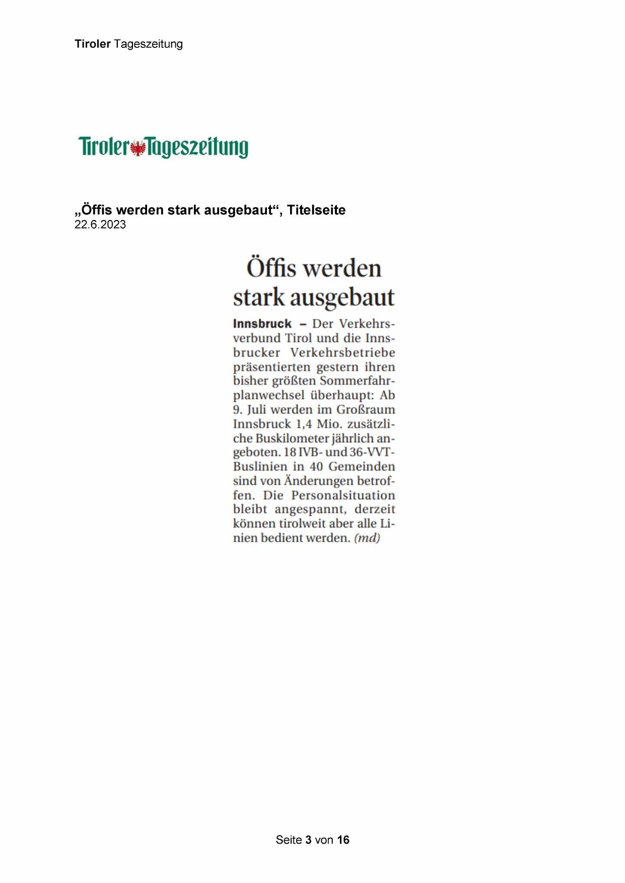 Innsbruck 1,4 Mio. zusätzliche Buskilometer jährlich angeboten. 18 IVB- und 36-VVT-