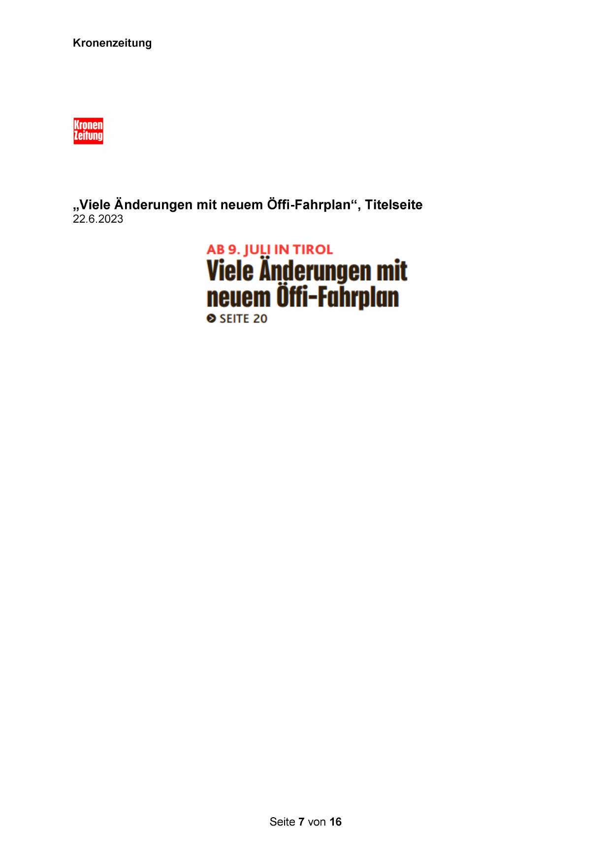 „Viele Änderungen mit neuem Öffi-Fahrplan“, Titelseite
