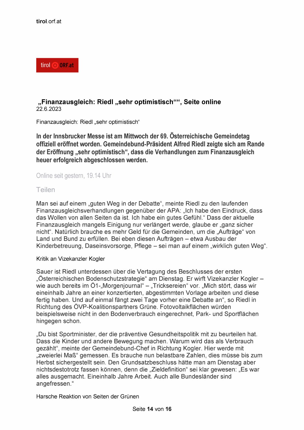 „Finanzausgleich: Riedl „sehr optimistisch““, Seite online