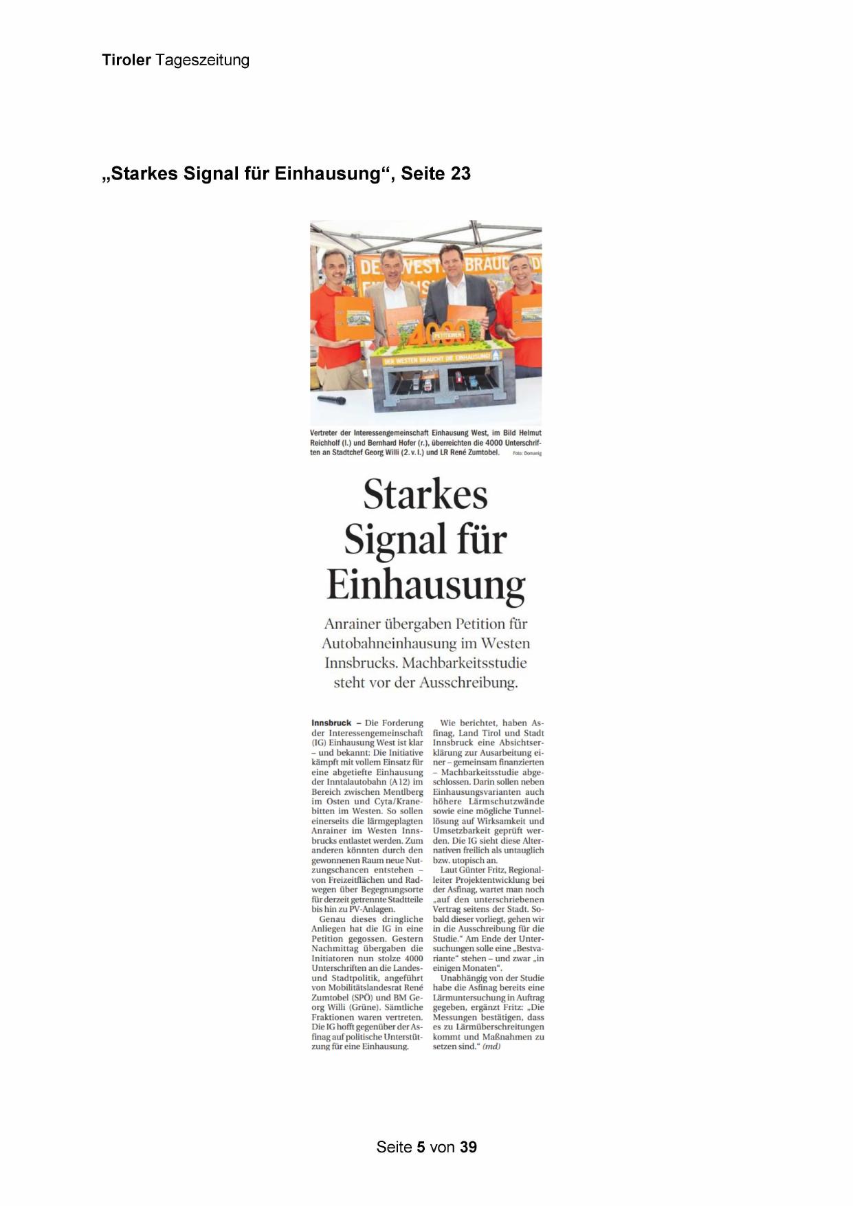 Anrainer im Westen Innsbrucks entlastet werden. Zum