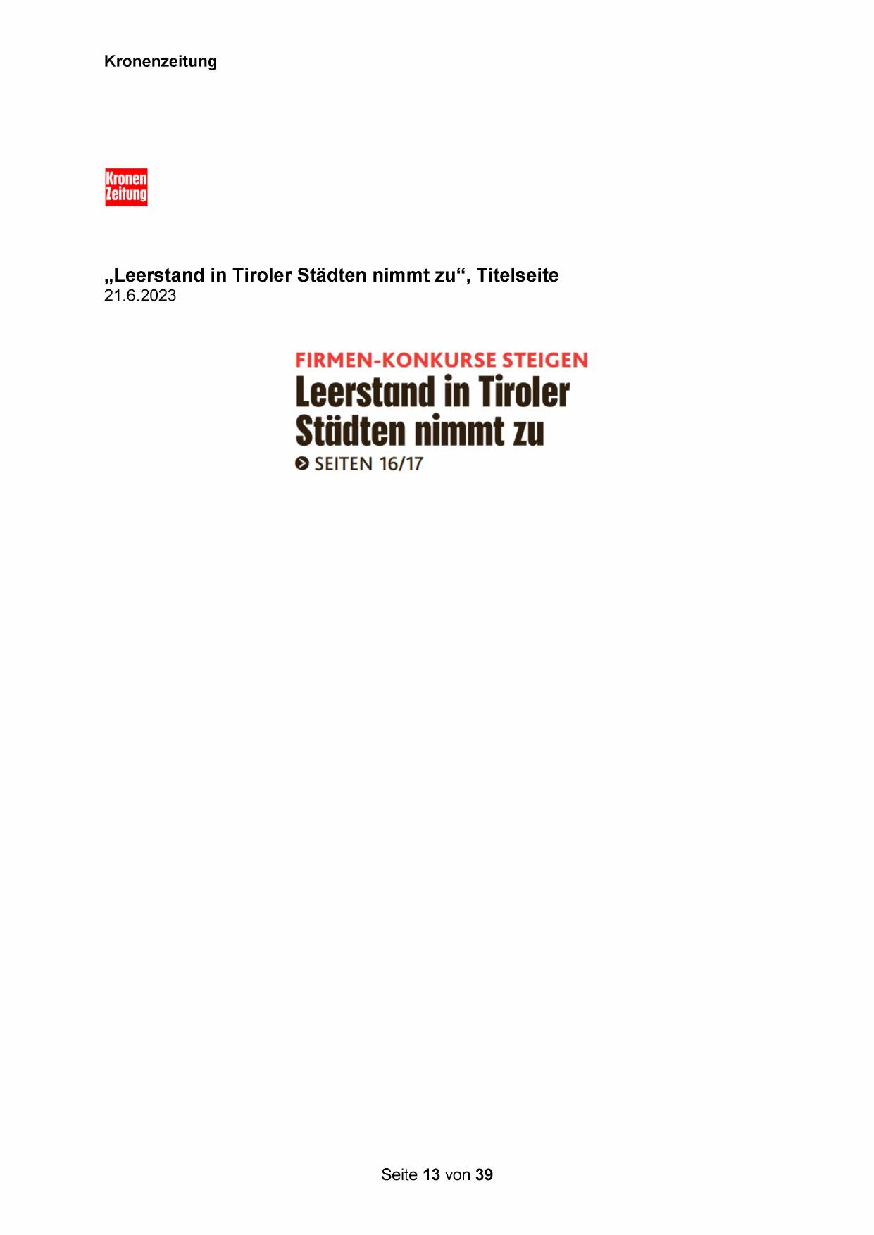 „Leerstand in Tiroler Städten nimmt zu“, Titelseite