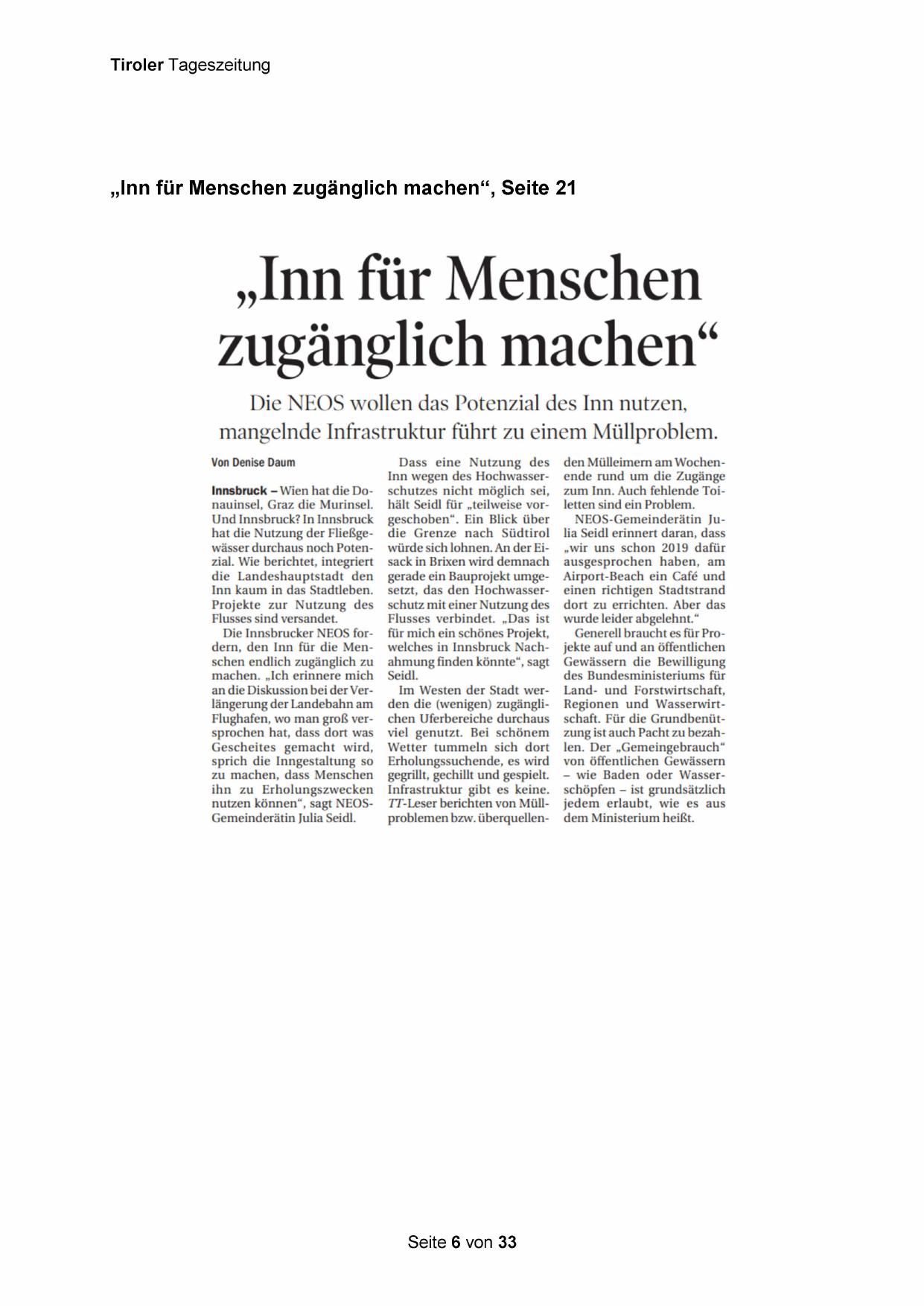 Die NEOS wollen das Potenzial des Inn nutzen,