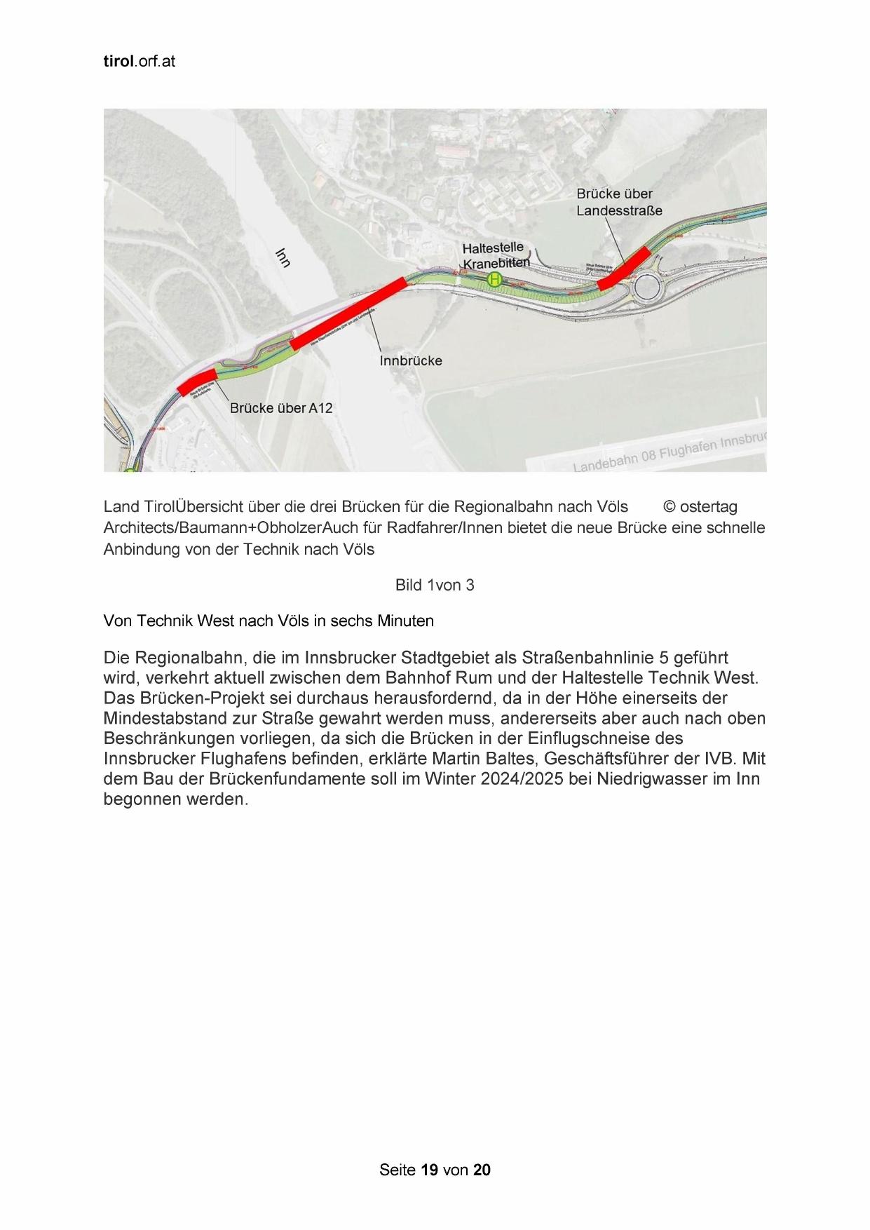 Land TirolÜbersicht über die drei Brücken für die Regionalbahn nach Völs © ostertag