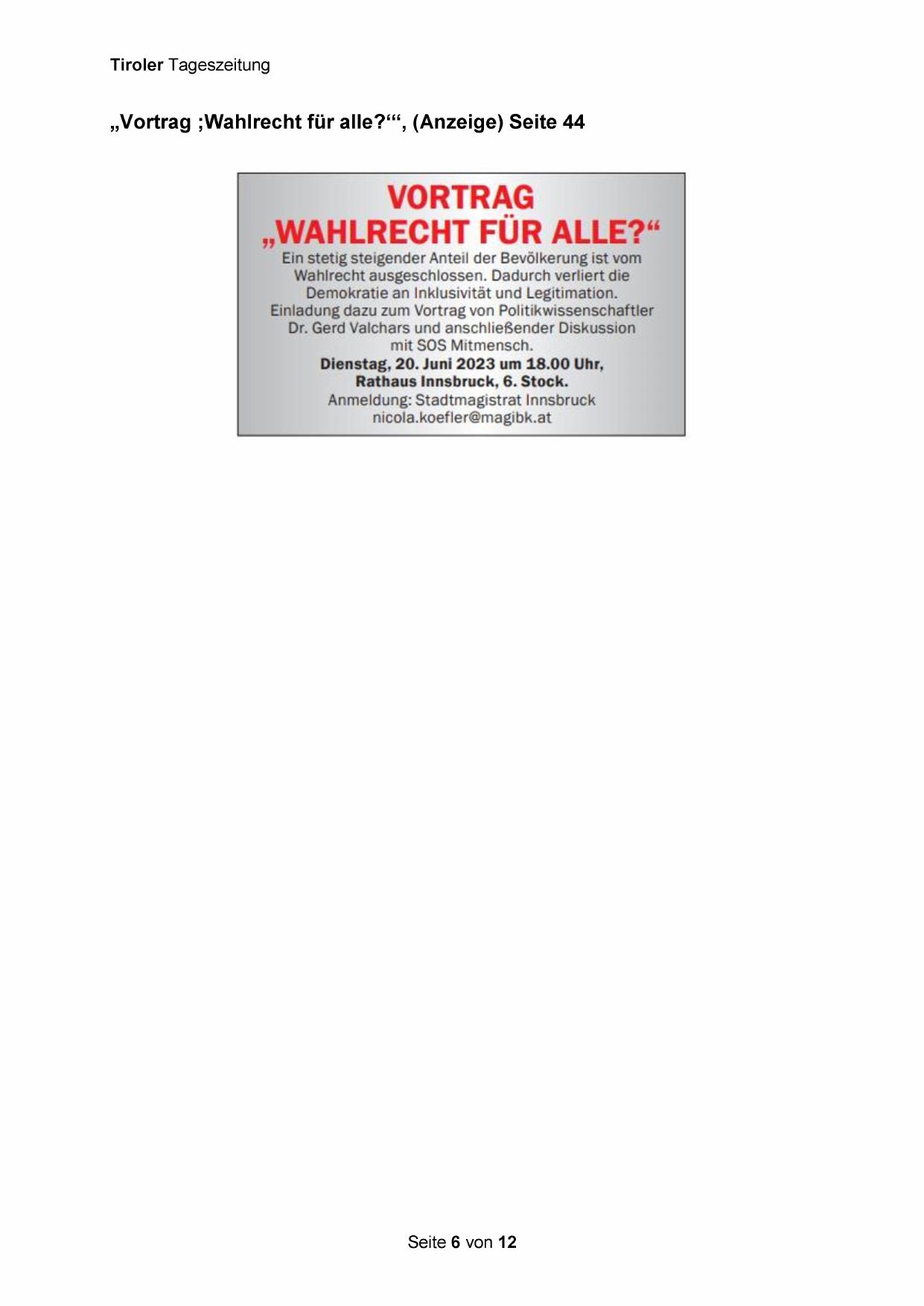 „Vortrag ;Wahlrecht für alle?*‘“, (Anzeige) Seite 44