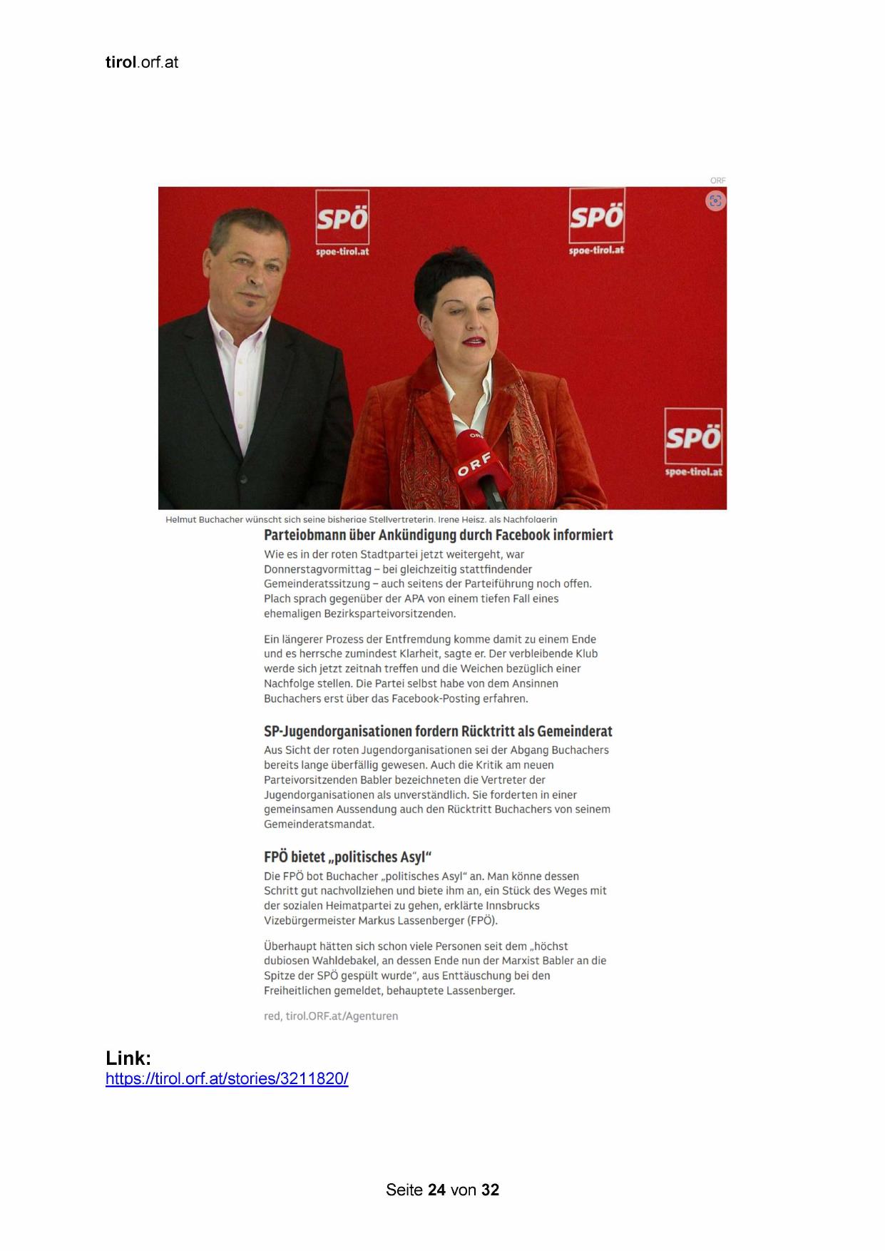 der sozialen Heimatpartei zu gehen, erklärte Innsbrucks