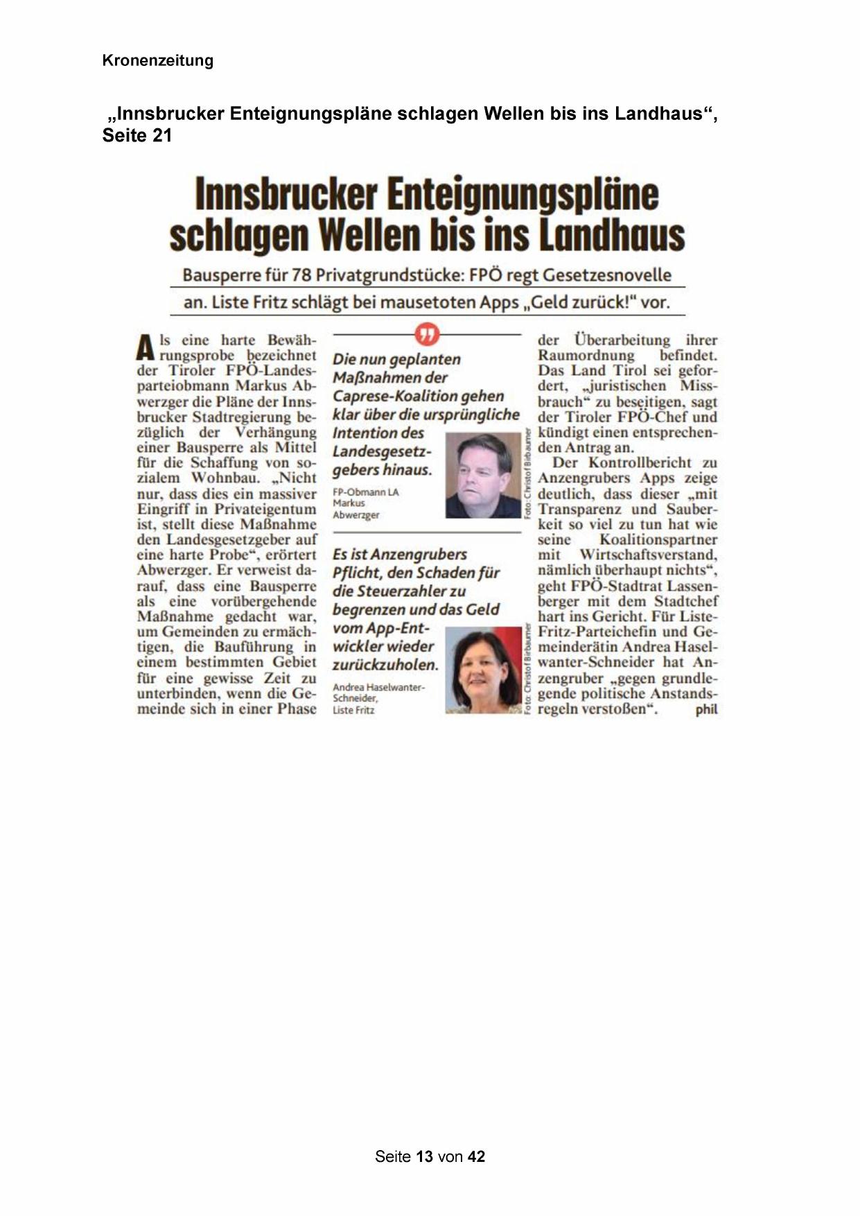 „Innsbrucker Enteignungspläne schlagen Wellen bis ins Landhaus“,