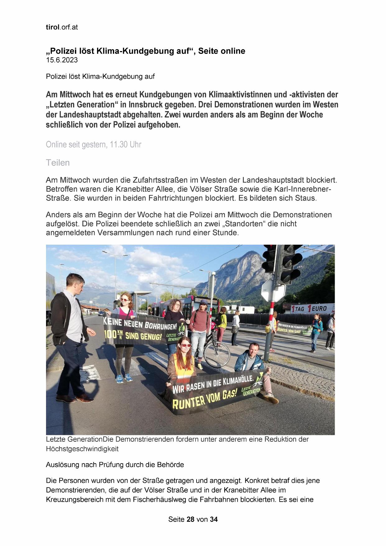 „Letzten Generation“ in Innsbruck gegeben. Drei Demonstrationen wurden im Westen