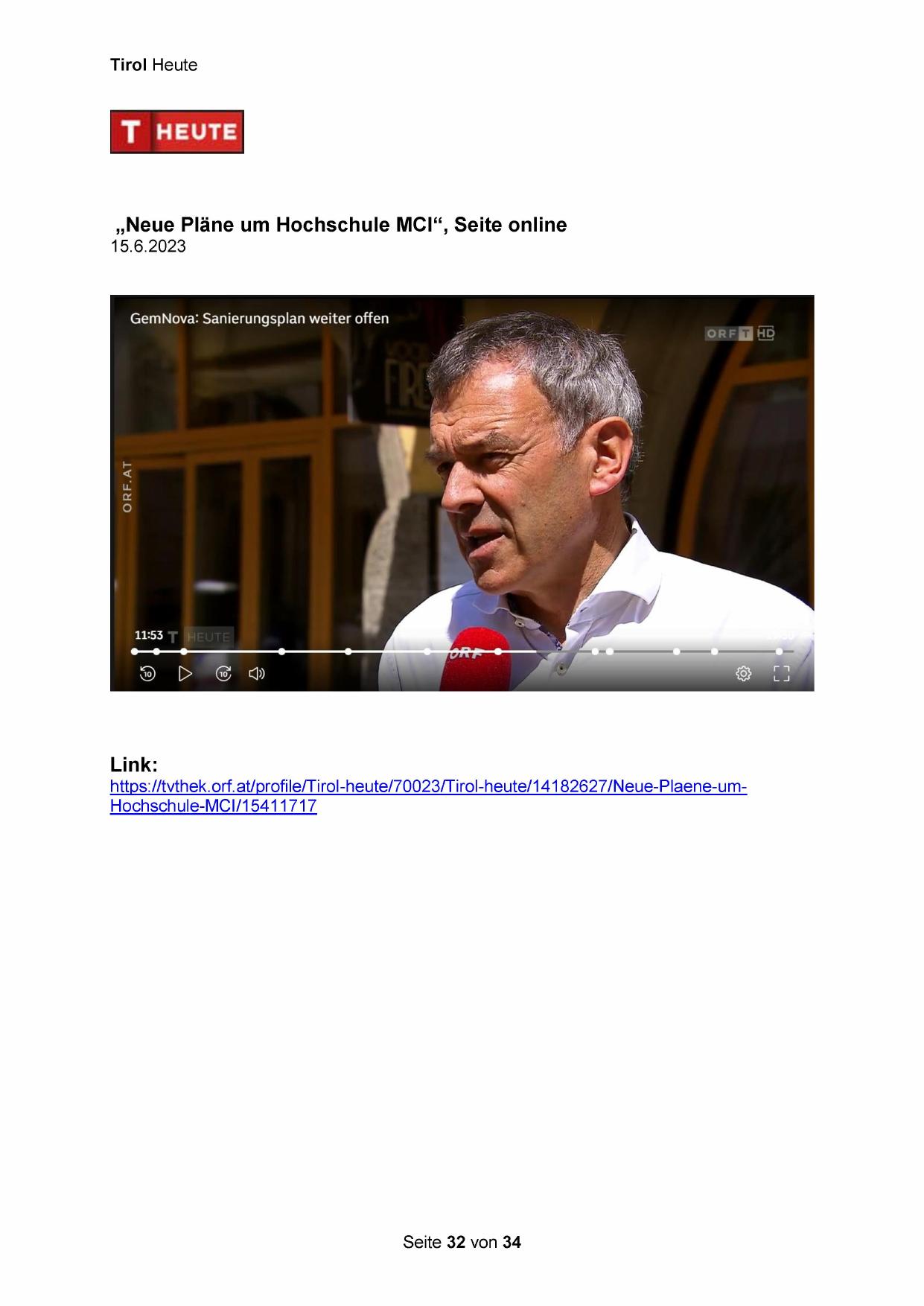 „Neue Pläne um Hochschule MCI“, Seite online