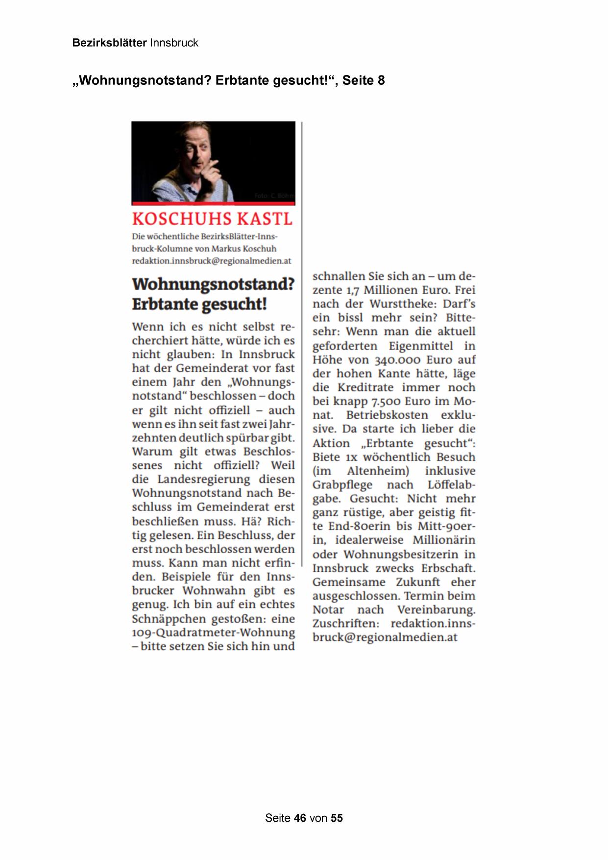 Die wöchentliche BezirksBlätter-Innsbruck-Kolumne von Markus Koschuh