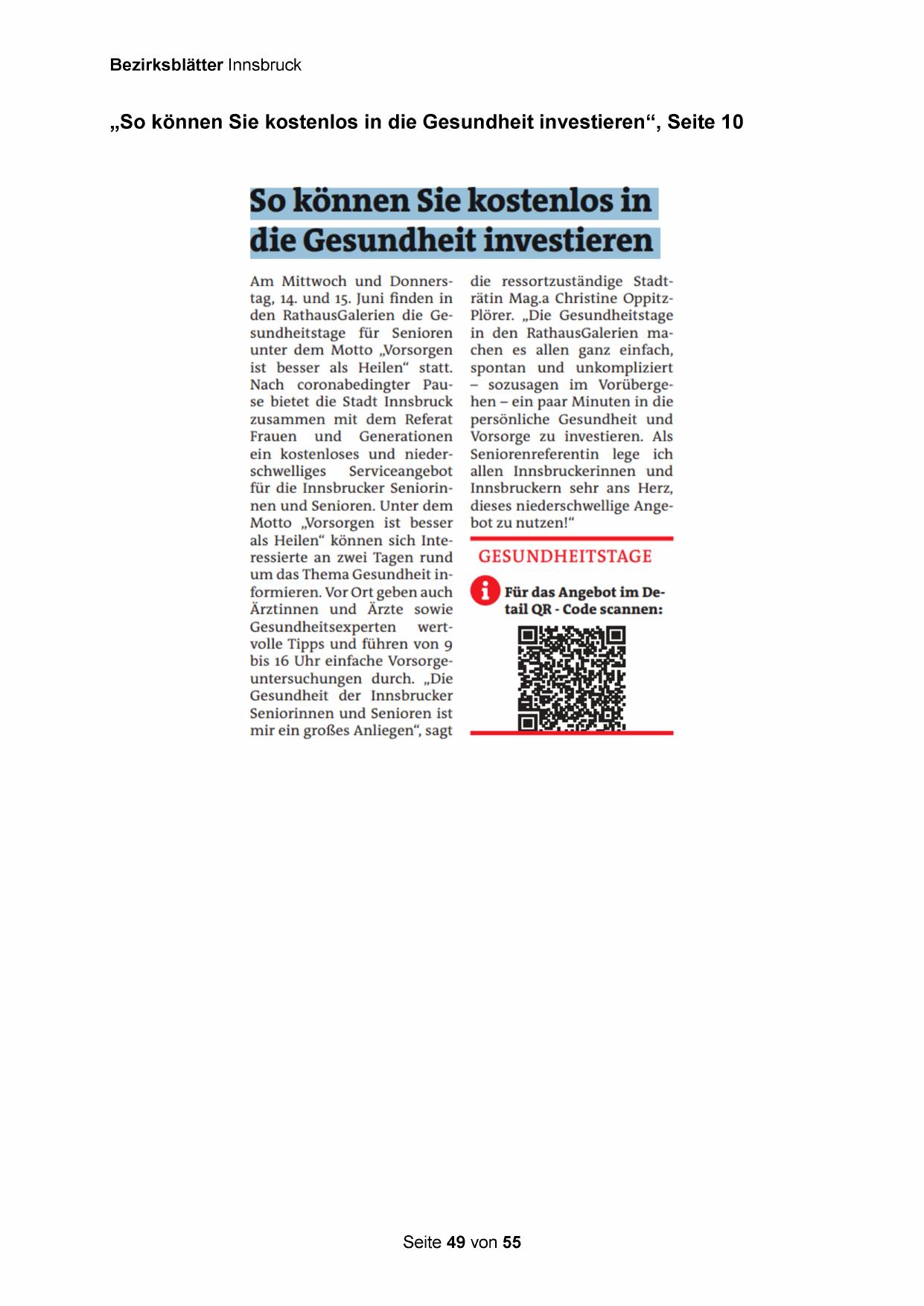 für die Innsbrucker Seniorinnen und Senioren. Unter dem