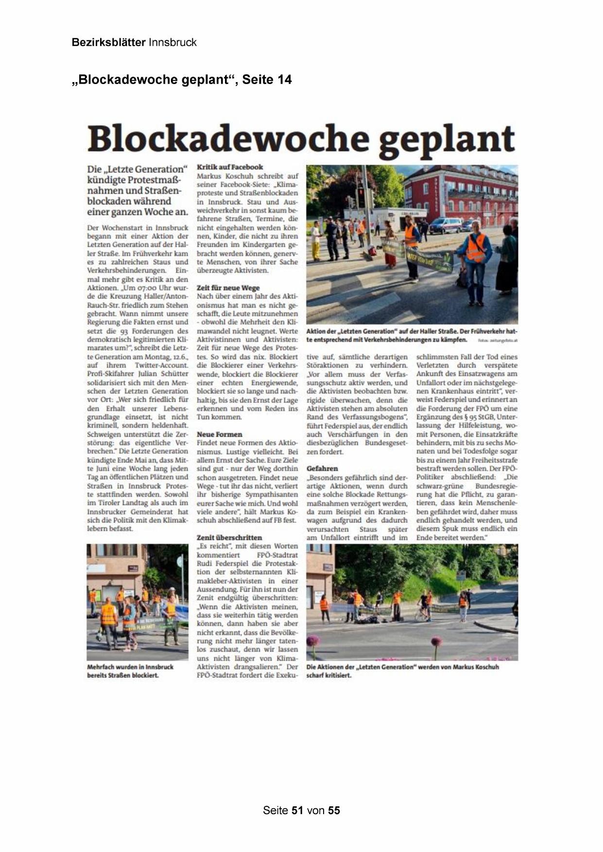 Aktionen. „Um 07:00 Uhr wurde die Kreuzung Haller/Anton-