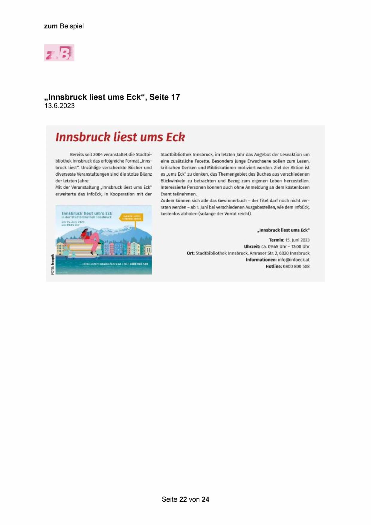 Ort: Stadtbibliothek Innsbruck, Amraser 5tr, 2, 6020 Innsbruck