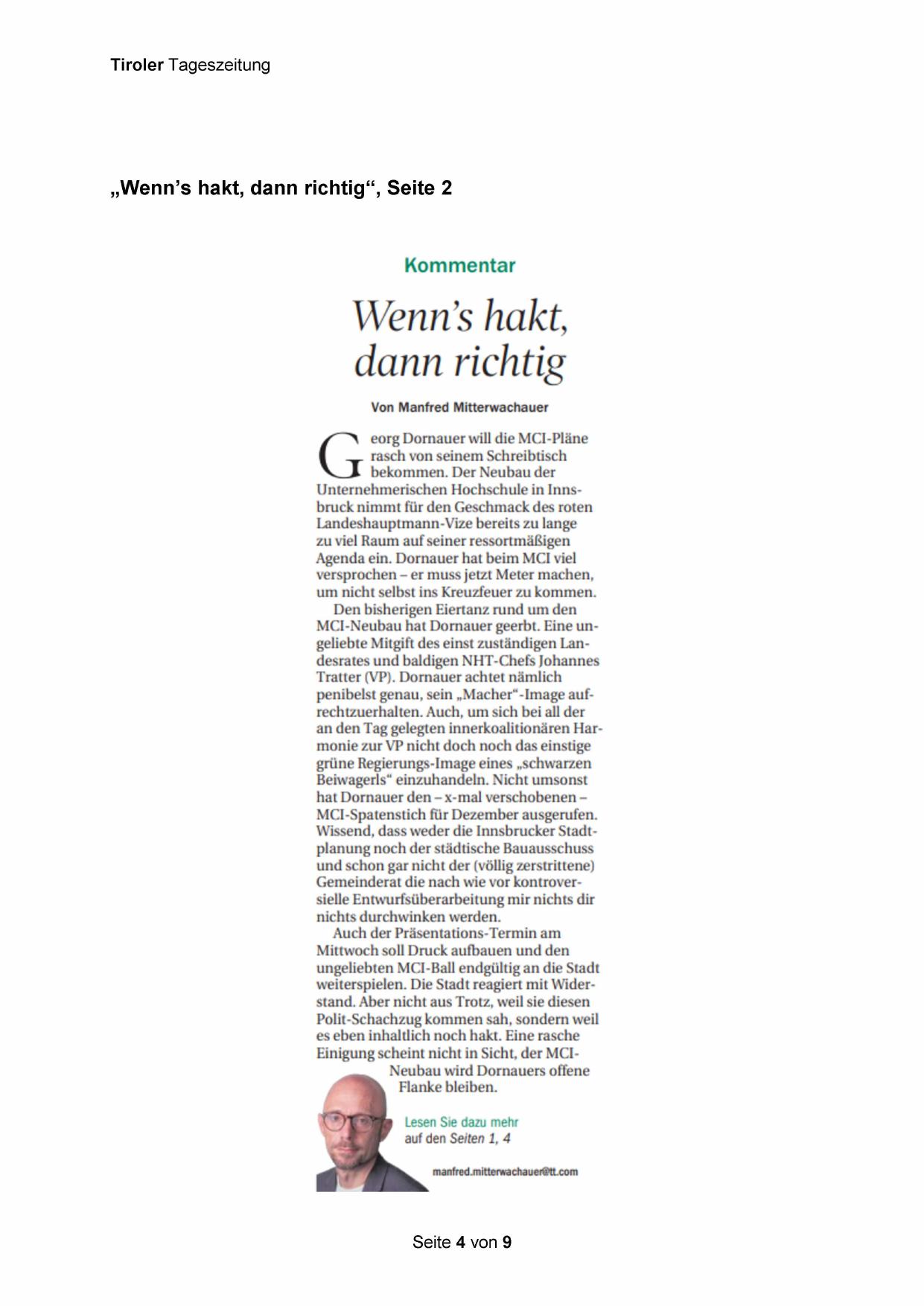 MCI-Neubau hat Dornauer geerbt. Eine ungeliebte Mitgift des einst zuständigen Landesrates und baldigen NHT-Chefs Johannes