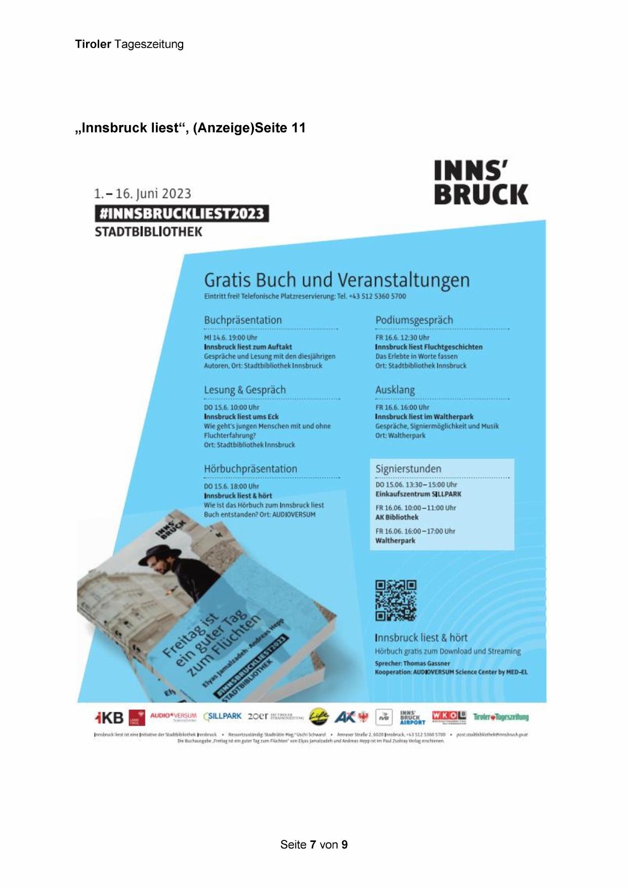 „Innsbruck liest‘“, (Anzeige)Seite 11
