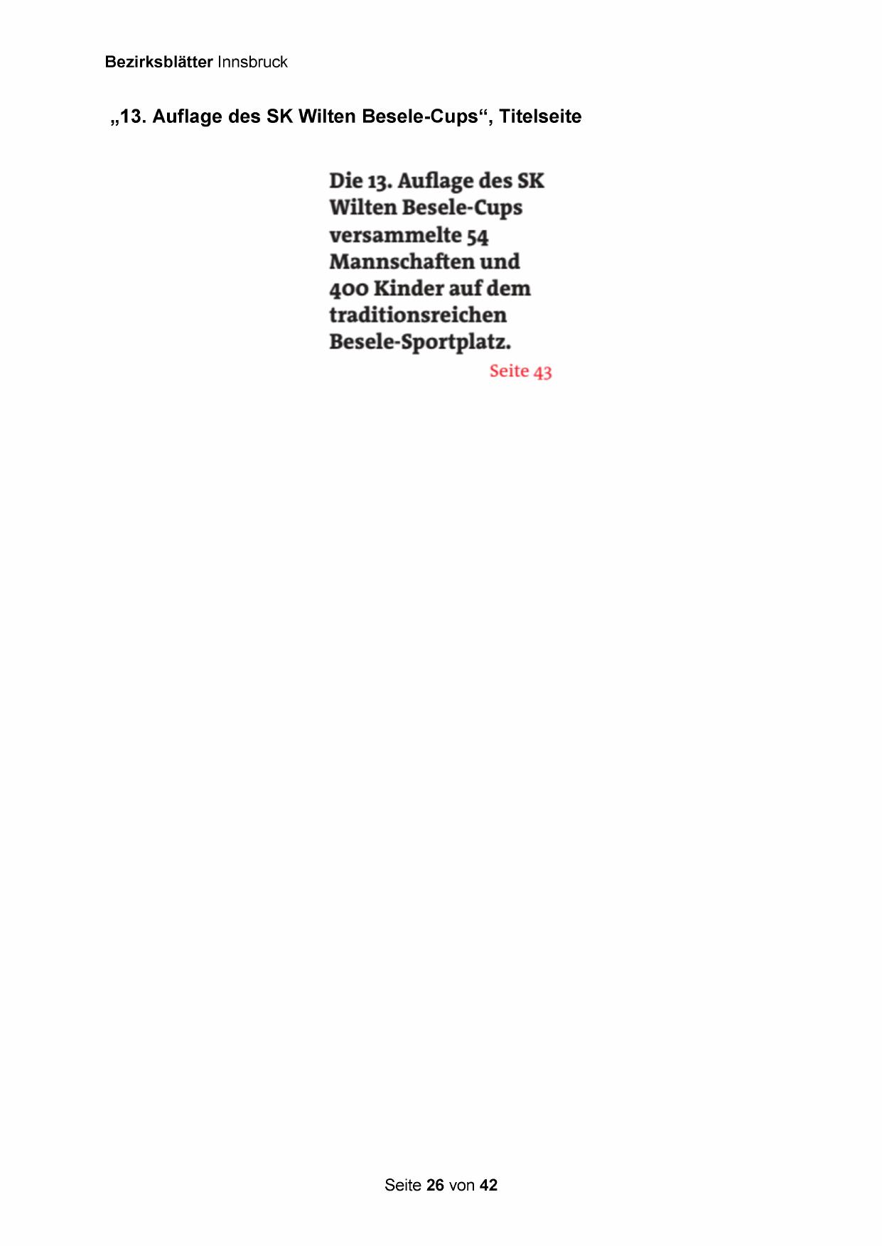 „13. Auflage des SK Wilten Besele-Cups“, Titelseite